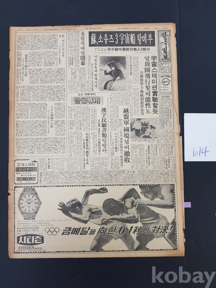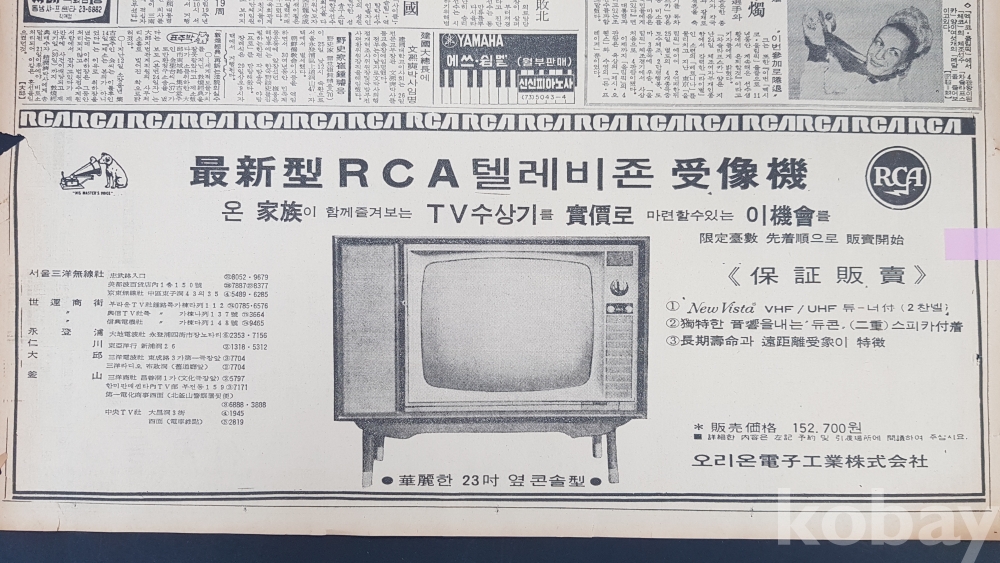 **** 1968.10.27(한국일보)/최신형 RCA 텔레비전 수상기 광고포함/약 8면