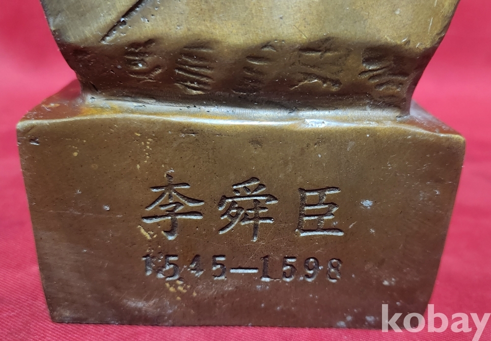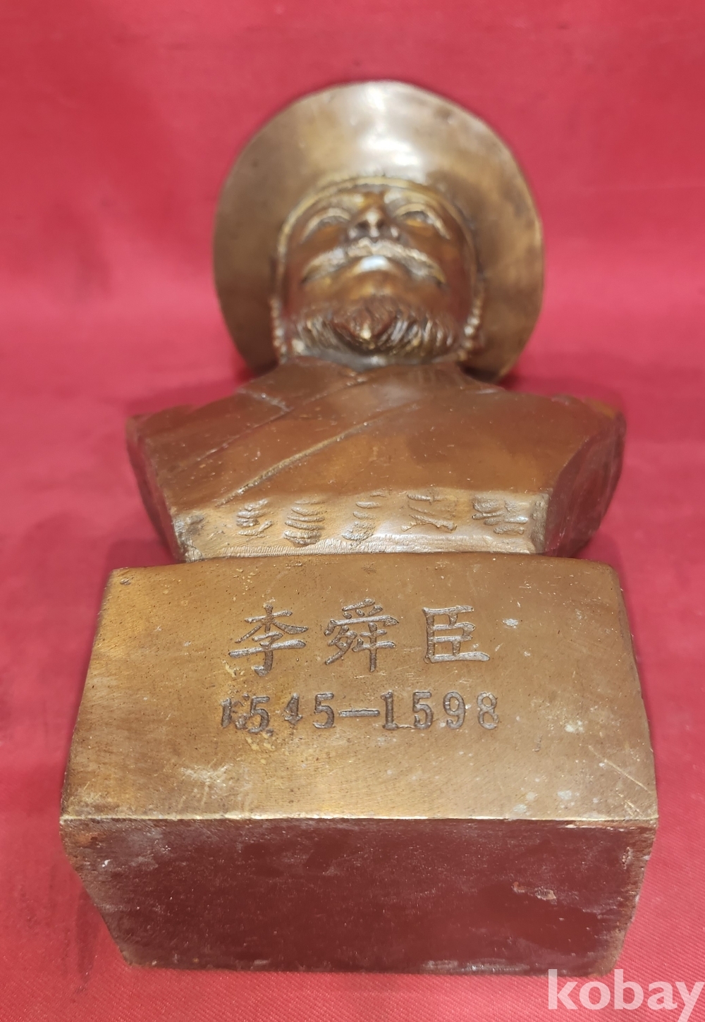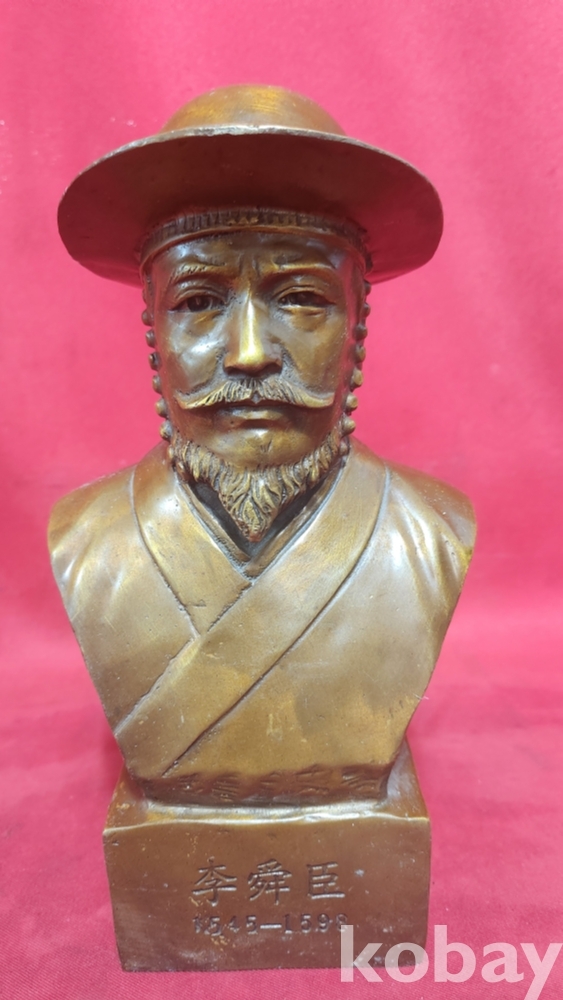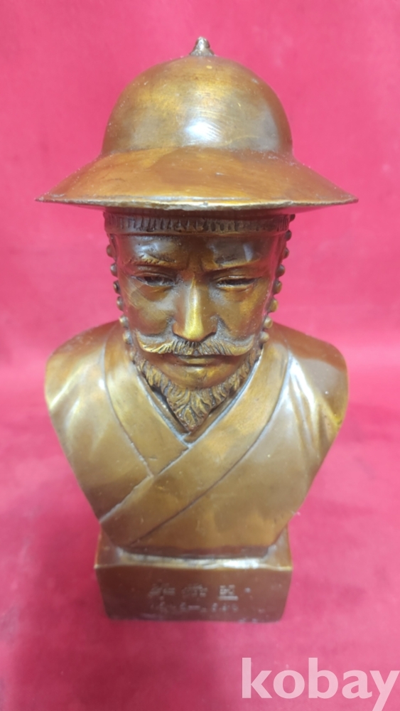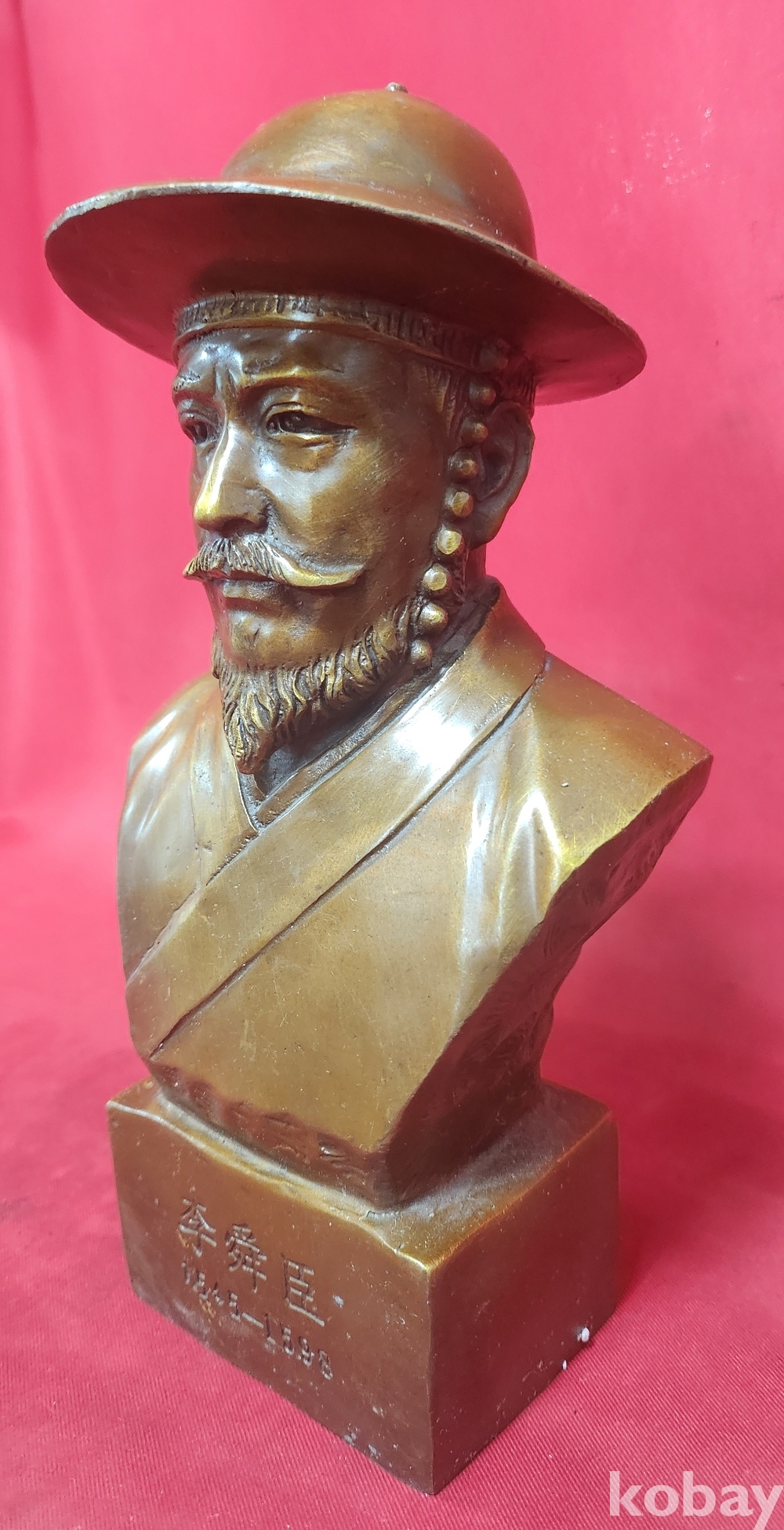 청동으로 완성된 이순신 장군의 흉상입니다,