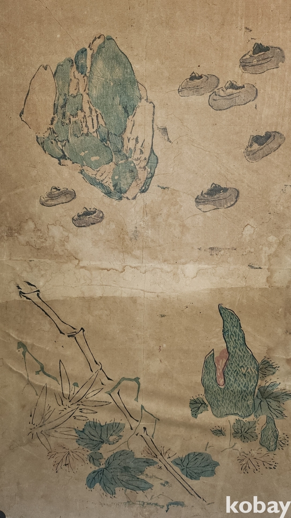 구한말 연대 종이에 당채로 채색된 민화로 명화입니다,