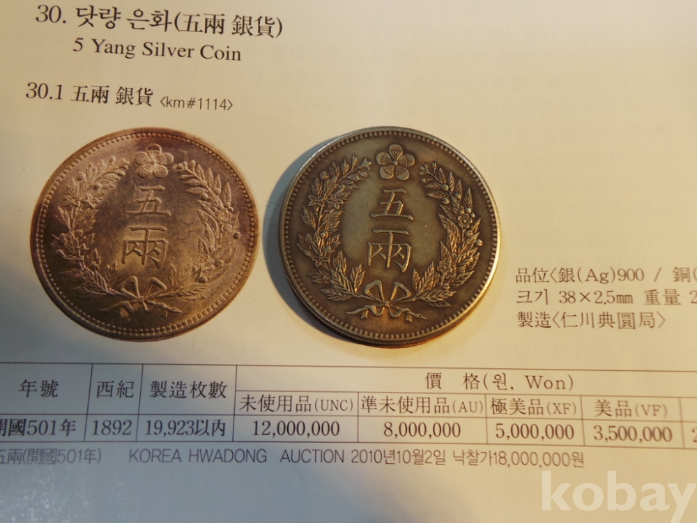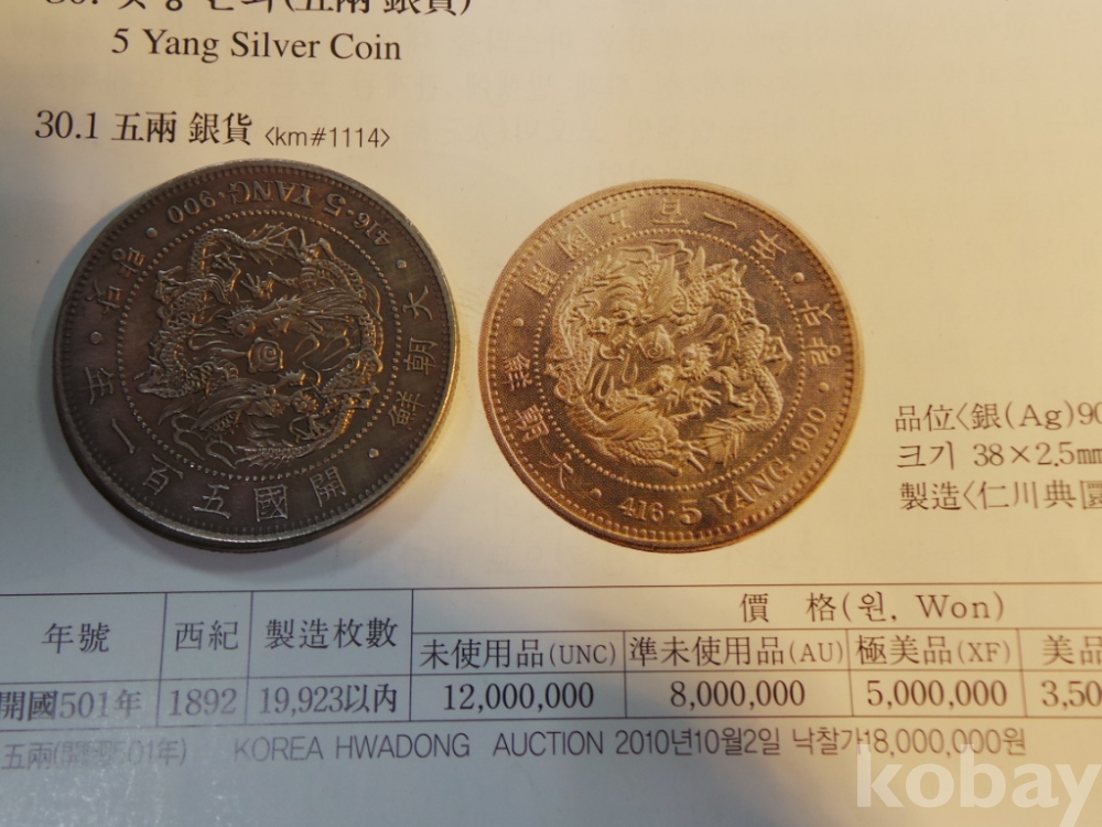 전면에는 오량,다른면에는 닷냥이라 찍혀 있는 주화.동전