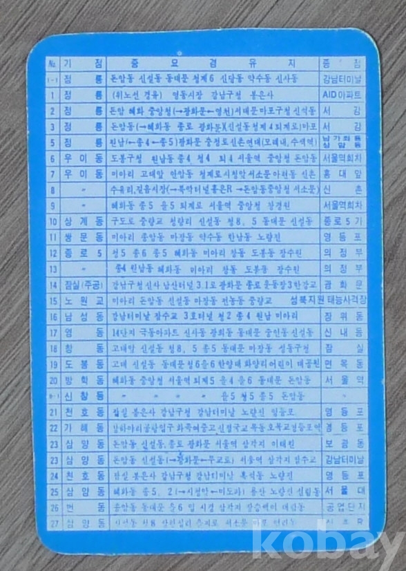 1970년대 영화배우 린제이 와그너 모델 광고 포켓 카드 - 뒷면 서울시 버스 노선 안내 -