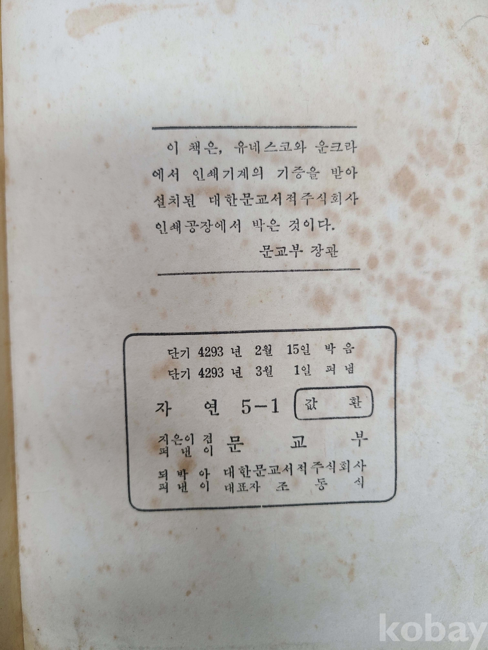 [교과서] 자연5-1*1960년/문교부 발행,낙서, 물먹음,찢어진부분 있음
