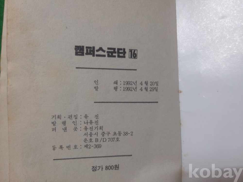만화 / 청소년만화 - 캠퍼스군단 - 1992년 제16권