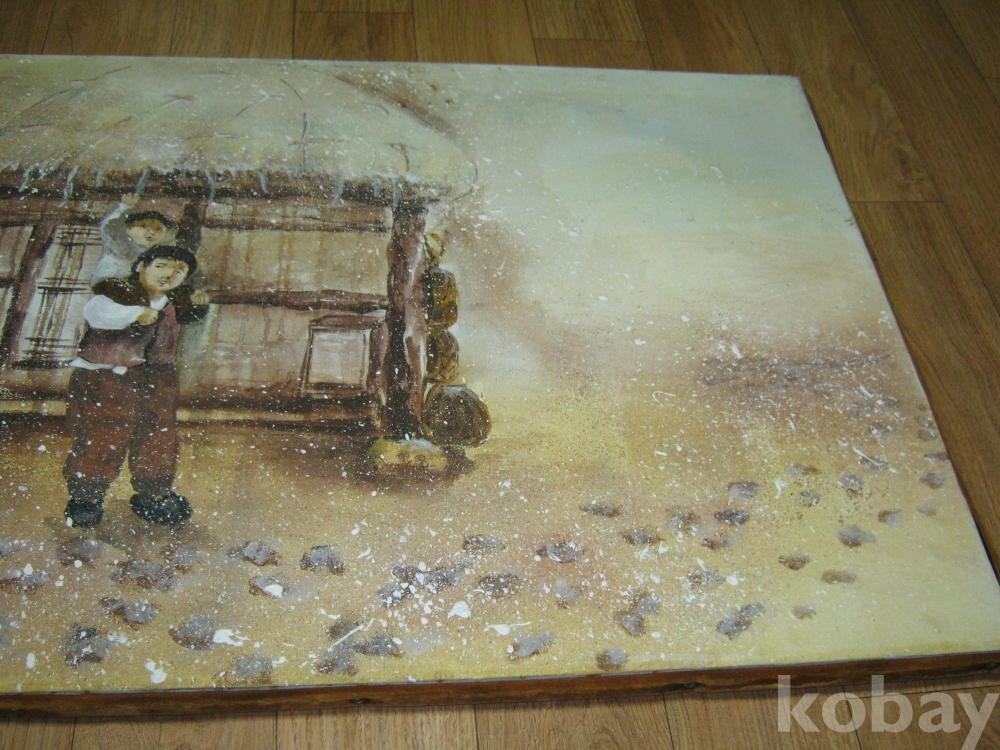 고두름 따는 즐기는 아버지와 아들 유화1점