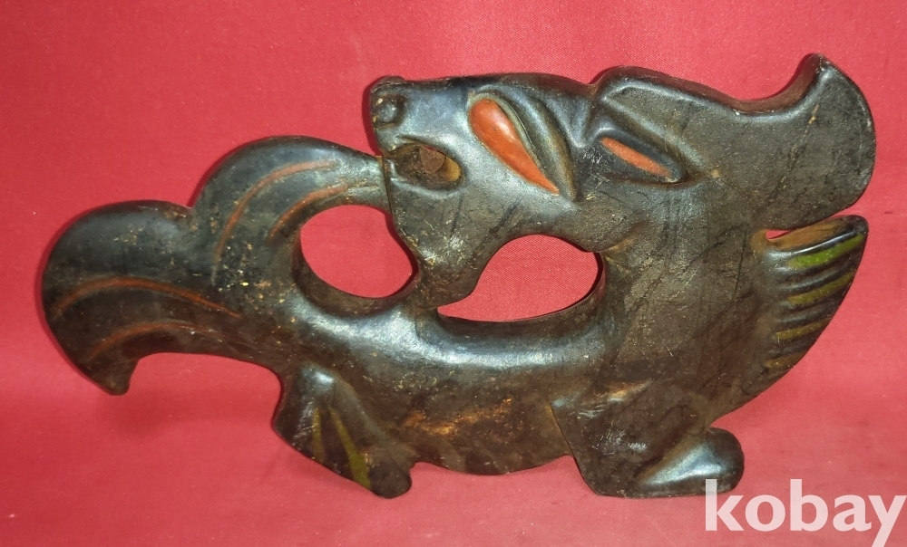 일반 홍산문화와는 다르게 흑옥에 홈을 파고 그 위에 다른 물질을 입사한 특별한 기물입니다,