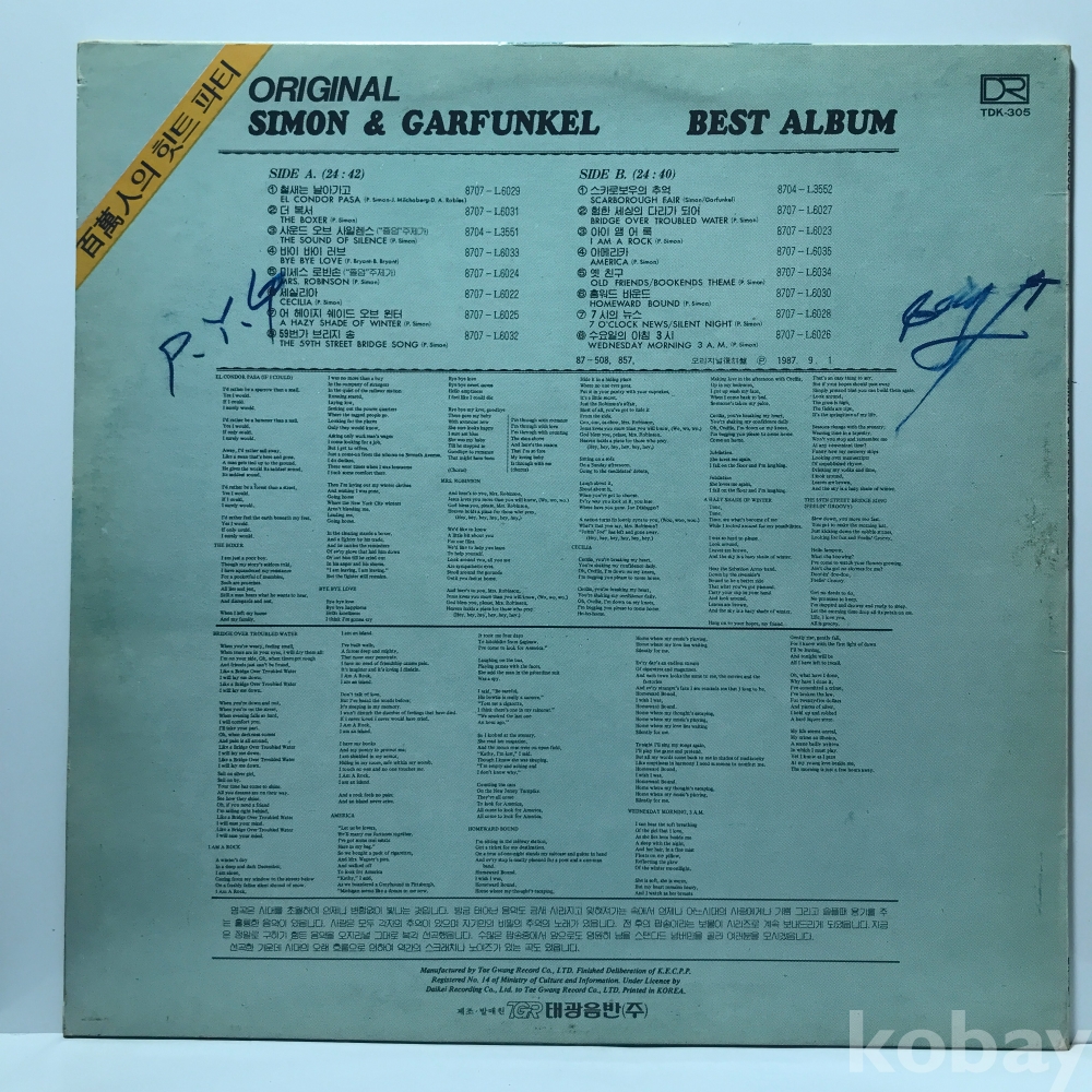 LP 30,900-192 Simon And Garfunkel . 87 태광 자켓 EX 알판 EX