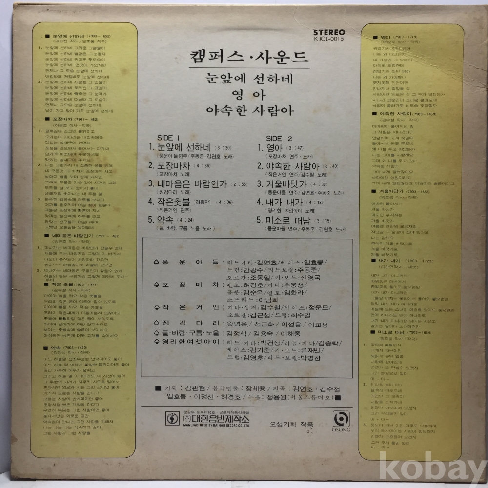 LP 810,700-4 캠퍼스 사운드 - 풍운아 포장마차 작은거인 징검다리 외 자켓 EX 알판 EX+ 79 년 국내반