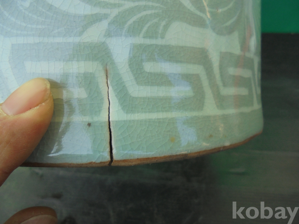상태는 2 번 사진부분에 가마에서 생긴 실금 입니다
