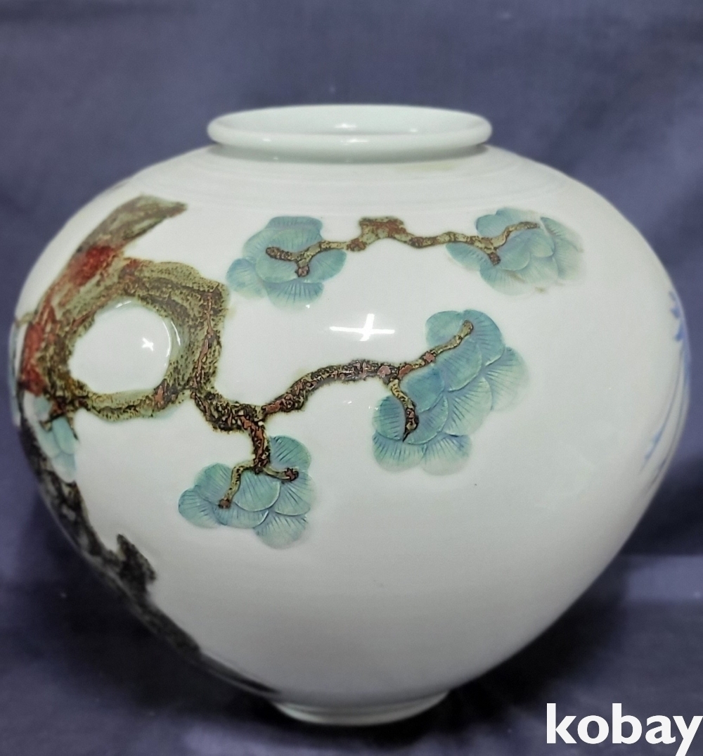 화천도예 철화 소나무 쌍학문 큰 항입니다,