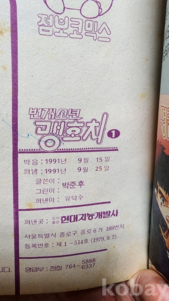 번개소년 맹호치 1, 빙그레문고, 박준후 그림