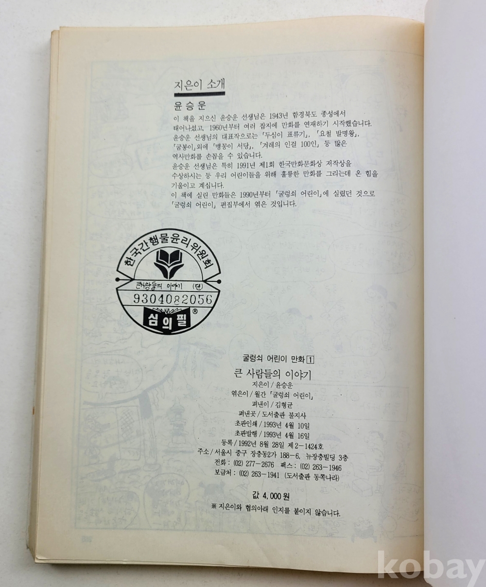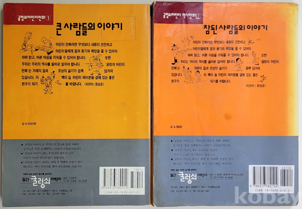 물 품 명 | 윤승운 / 큰사람들의 이야기, 참된 사람들의 이야기 / 굴렁쇠어린이만화(1,2) 총2권 / 1993년 초판 / 불지사 |