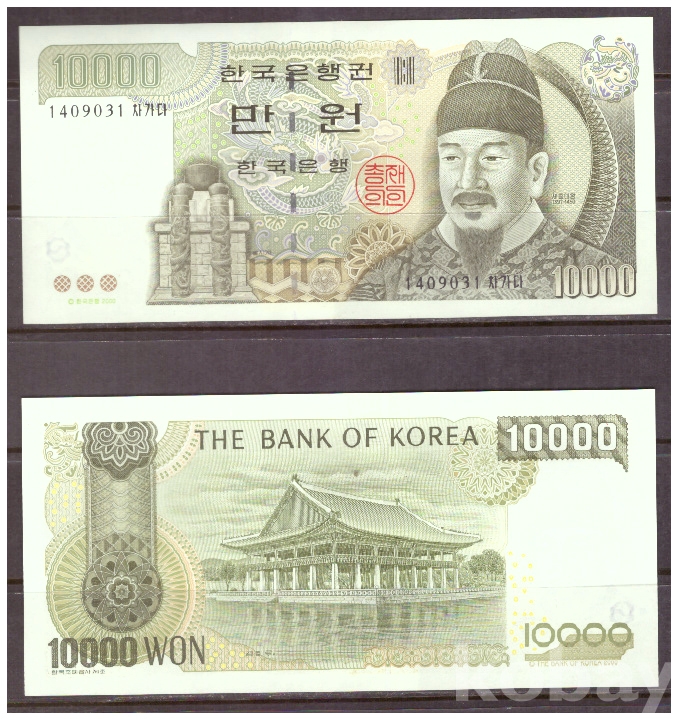 (한국지폐) 세종대왕-물시계 10000원 (1409031차가다) (점자부호 하단 년도표시2000) 미사용