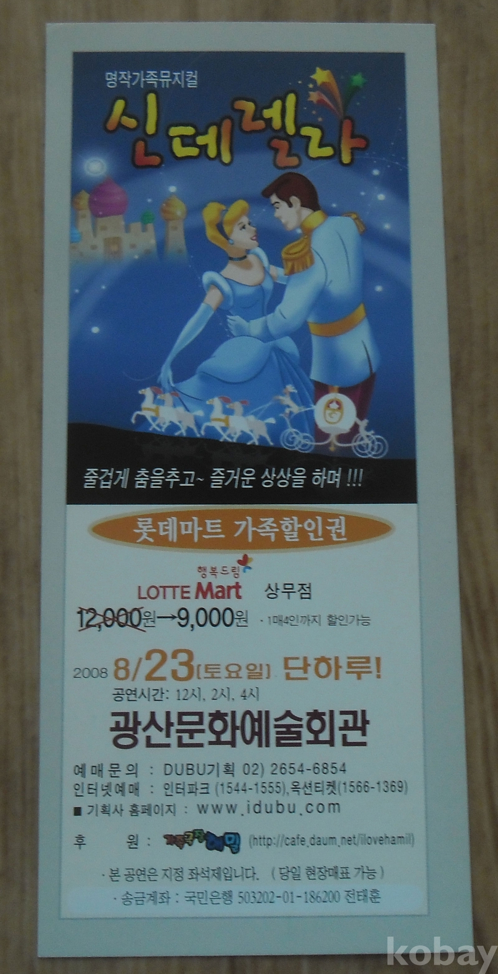 2008년 뮤지컬 신데렐라 공연(광주문화예술회관)가족할인권