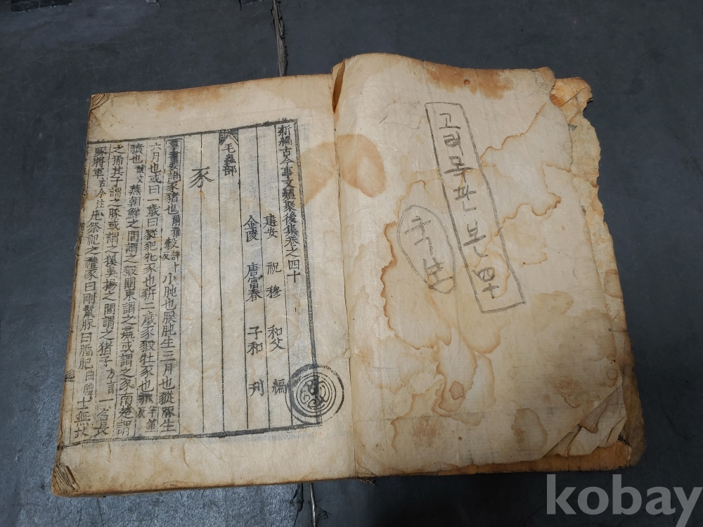 표지에 낡음과 앞장의 하단에 낡음이 있어요