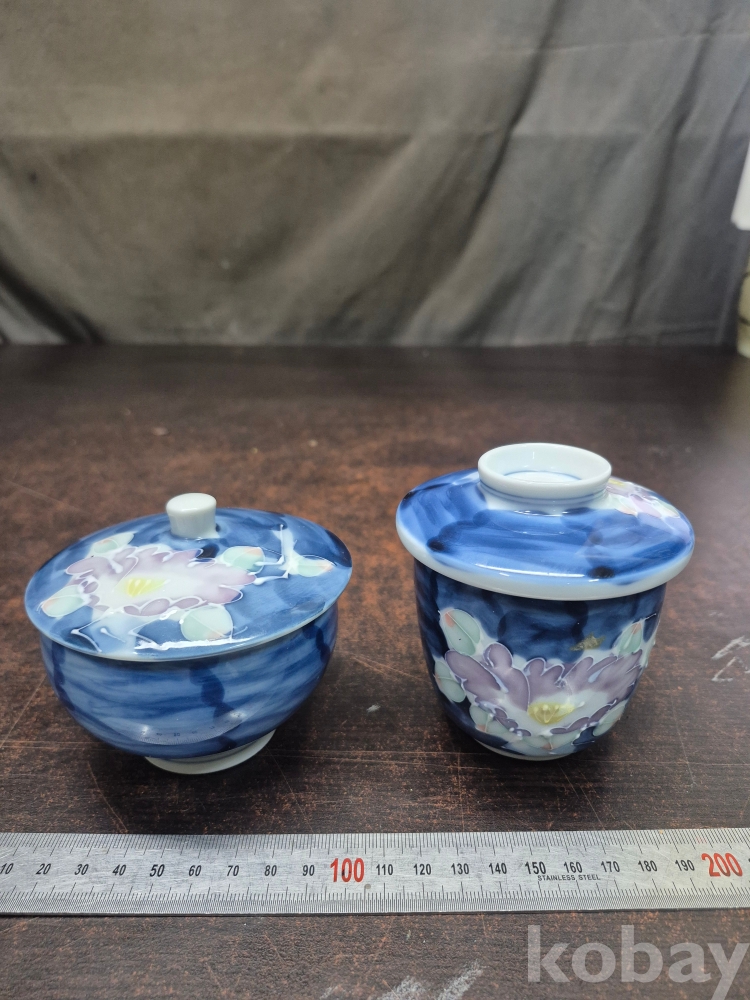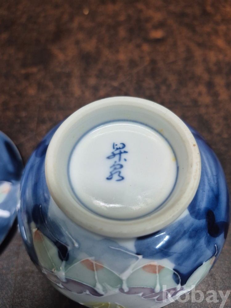 일본 도자기 뚜껑이 있는 그릇 2점 핸드메이드로 그림이 그려져 있어요 작가필 있어요 2점 일괄 8*8*10