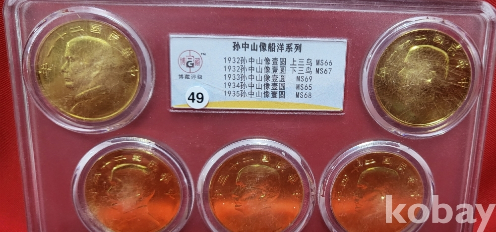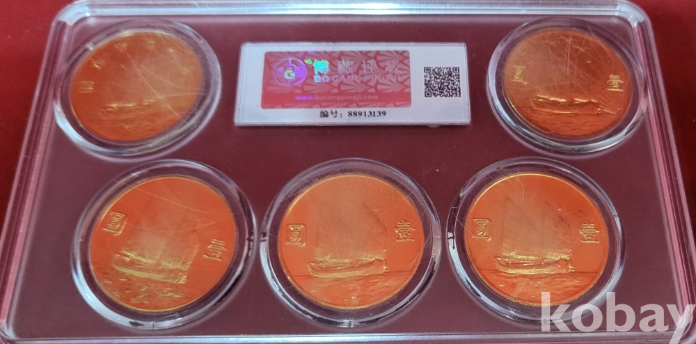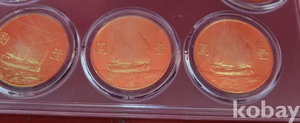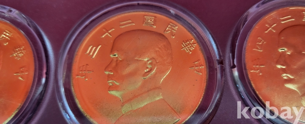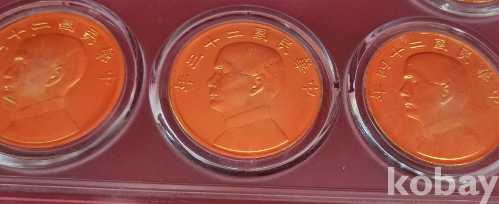 중화민국 11년21년 22년 23년 24년 등의 문자가 보이는 완전 밀봉된 황금색 큰 엽전입니다,