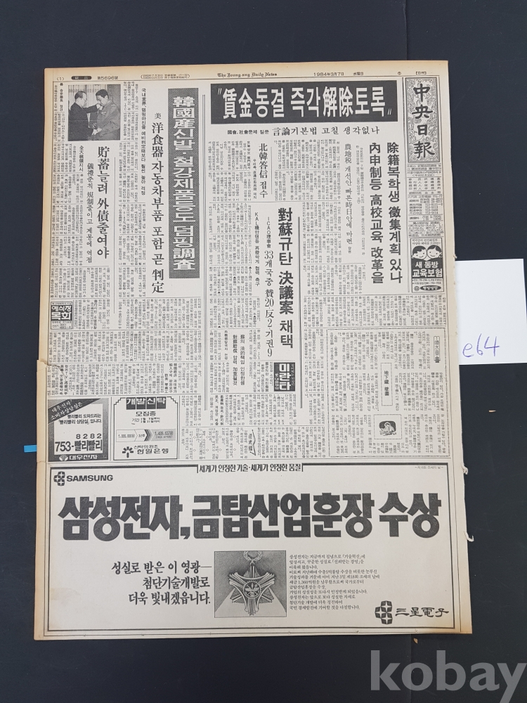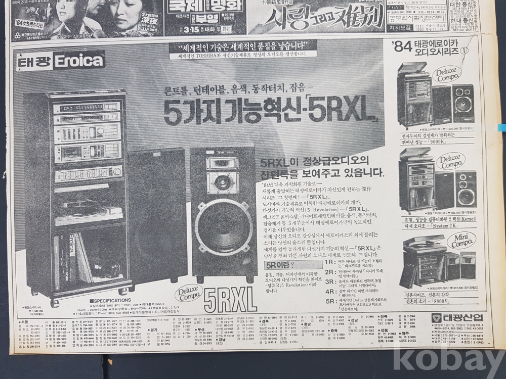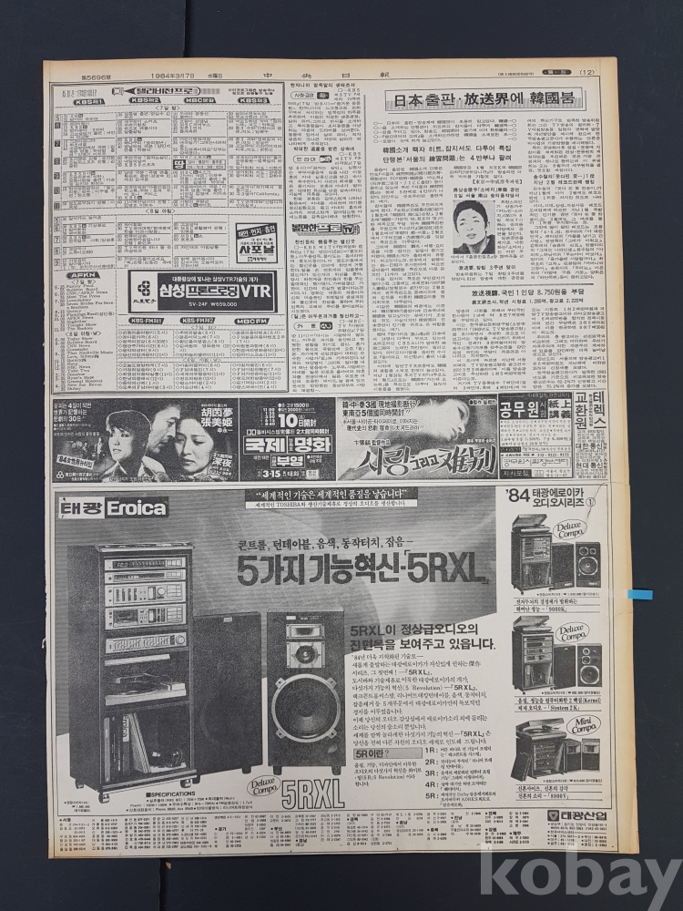 **** 1984.03.07(중앙일보)/태광산업 에리카 5RXL 광고 등/12면