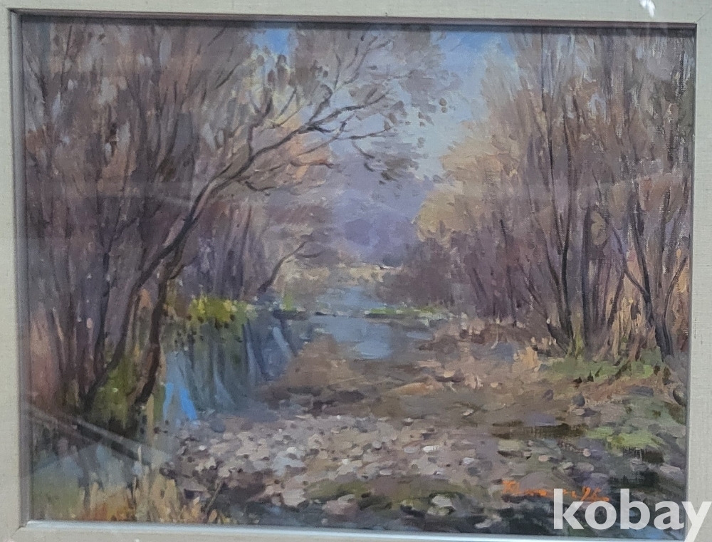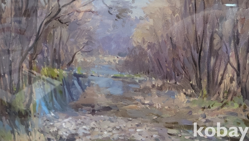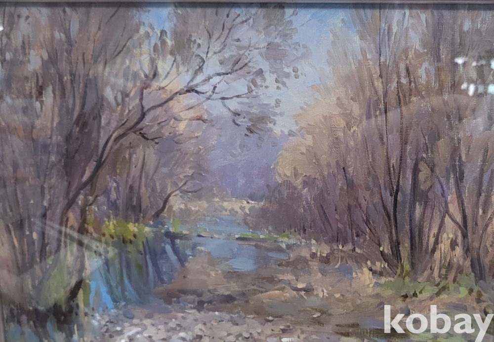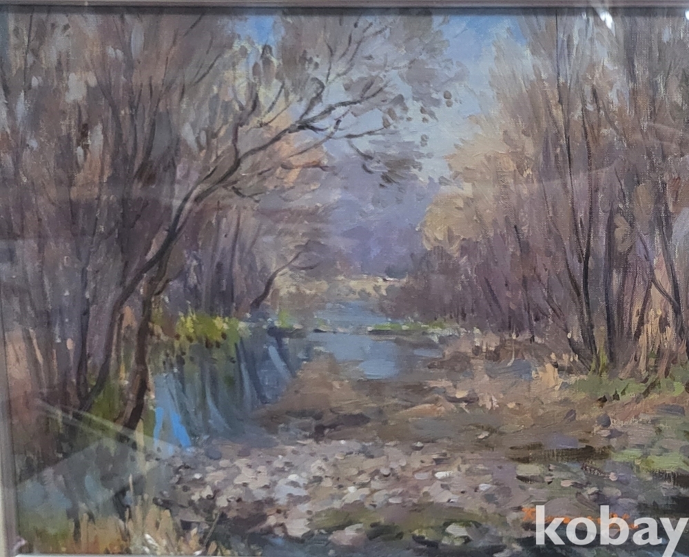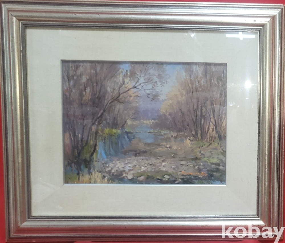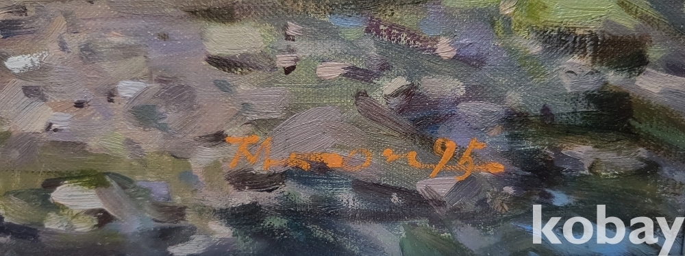 작가의 사인이 보이는 켄버스 유화 풍경 6호 나무액자입니다,