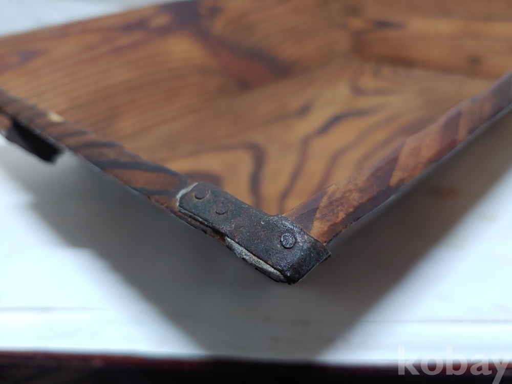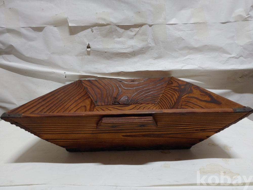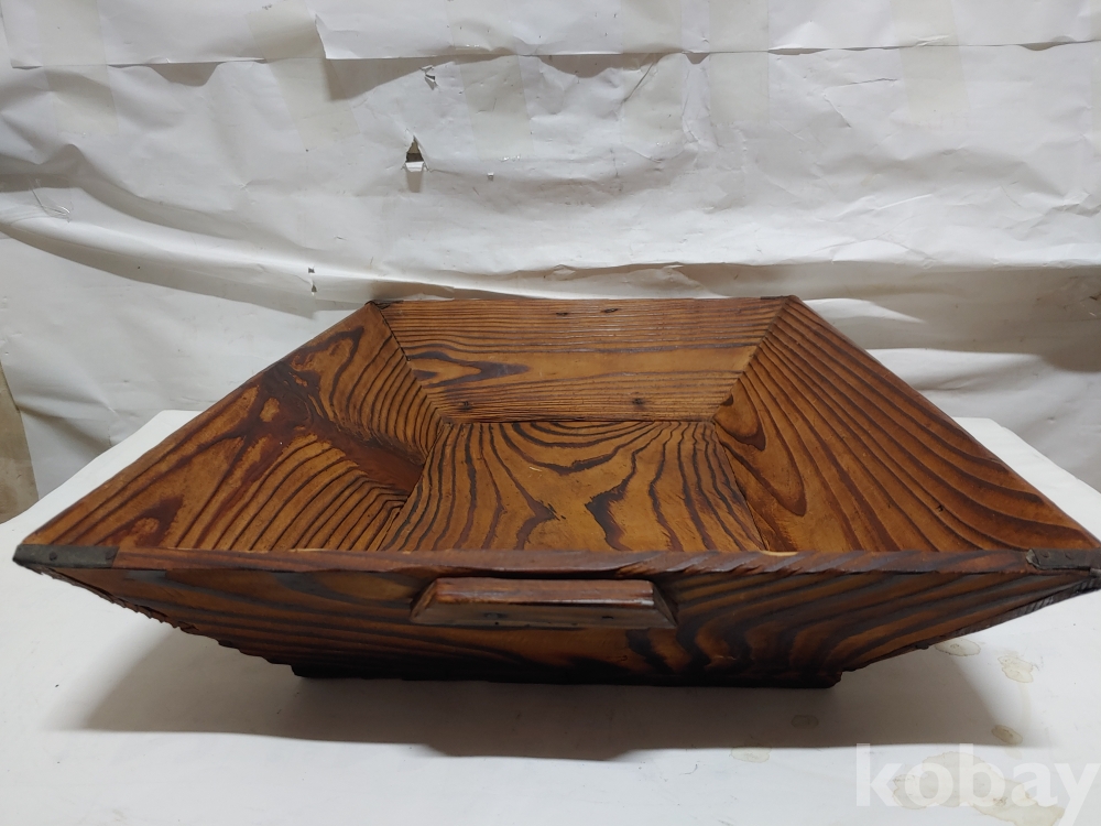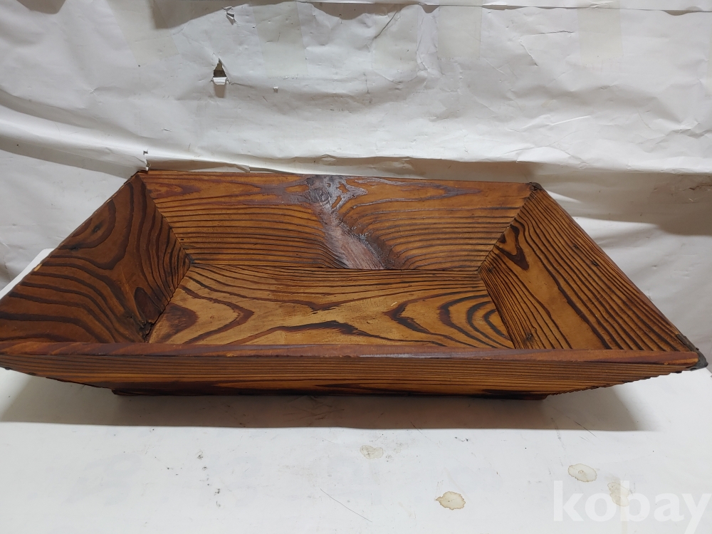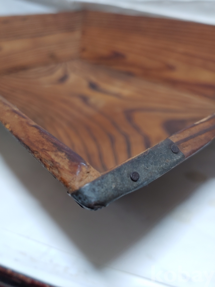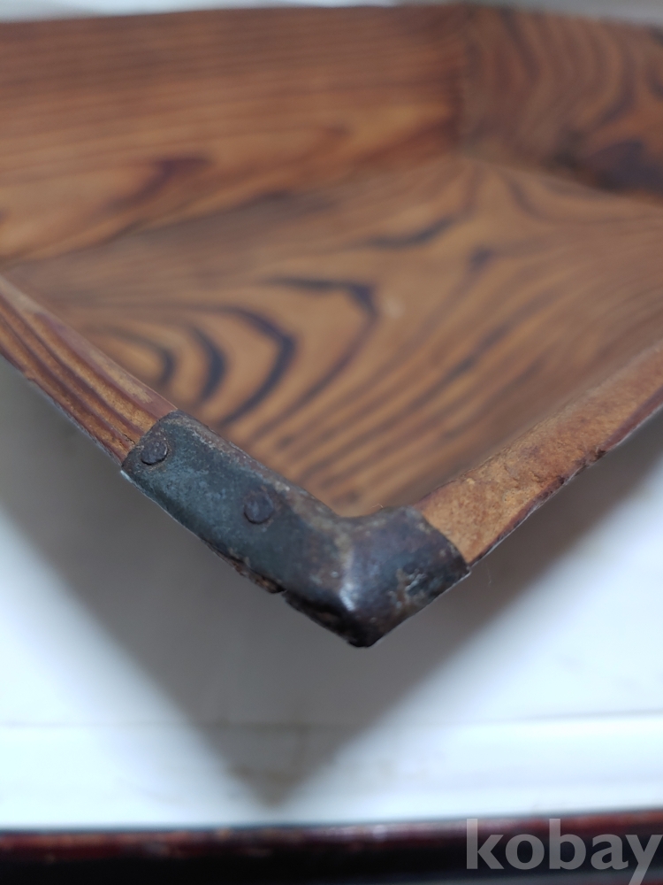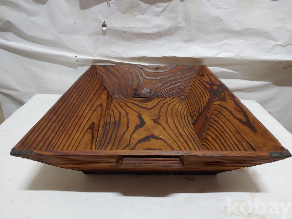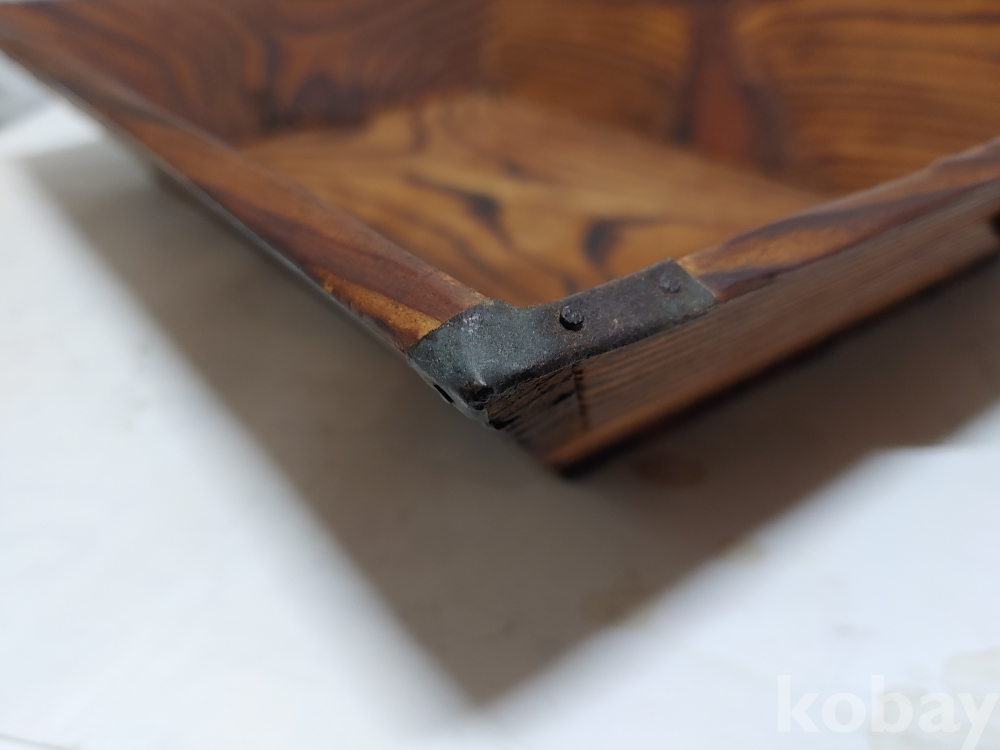 ""귀물림에 모서리가 양철로 마무리가 되어 있는 옛날 소나무 네모 함지""