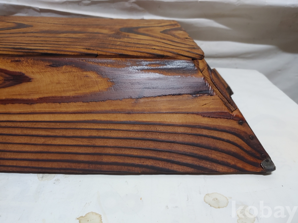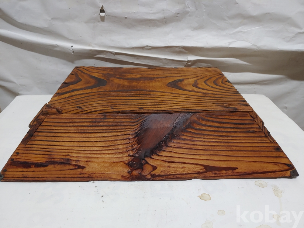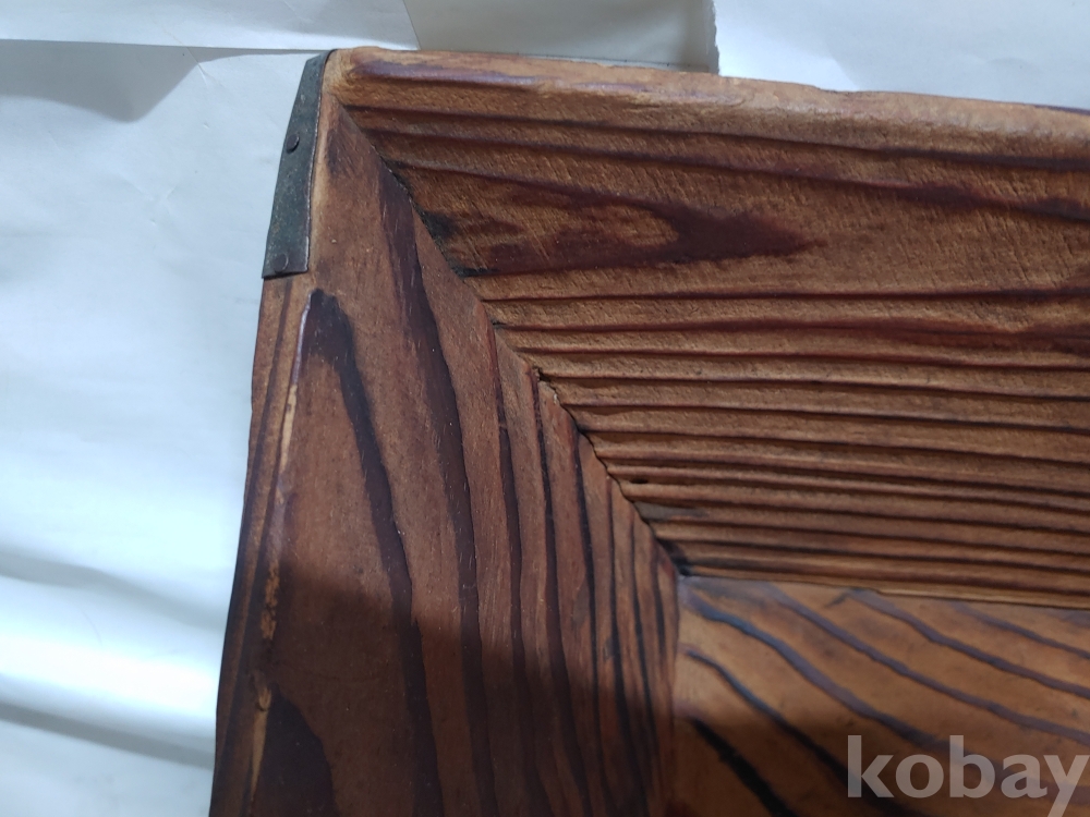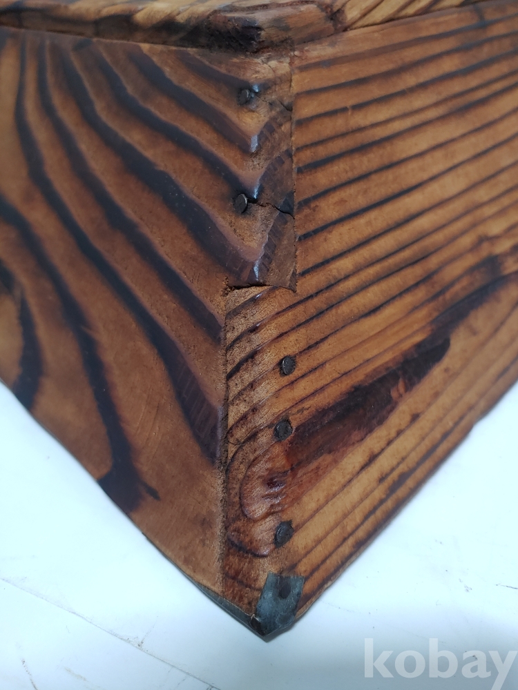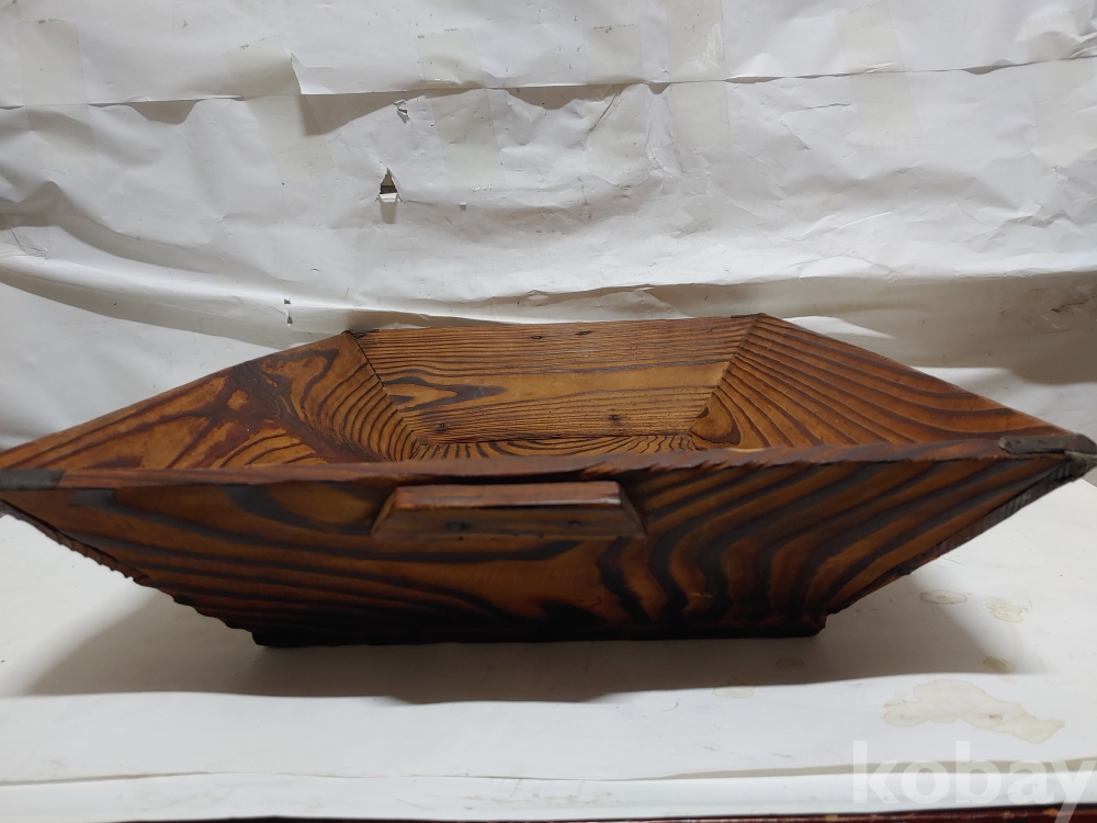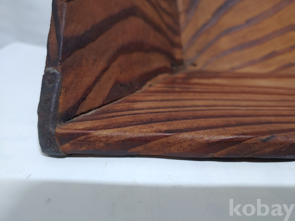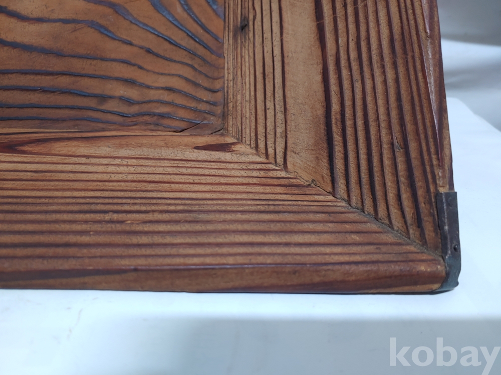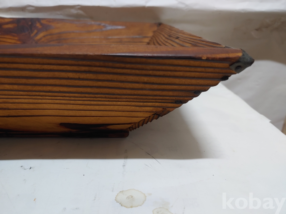 ""귀물림에 모서리가 양철로 마무리가 되어 있는 옛날 소나무 네모 함지""