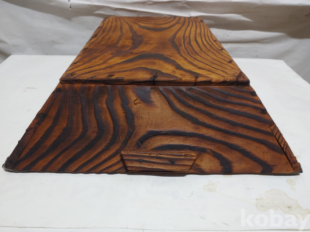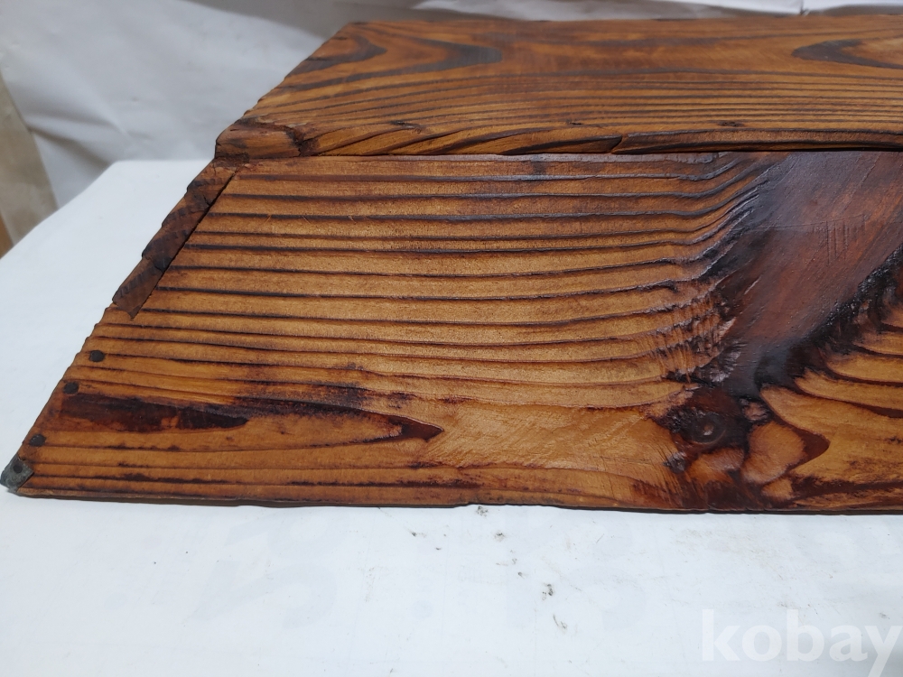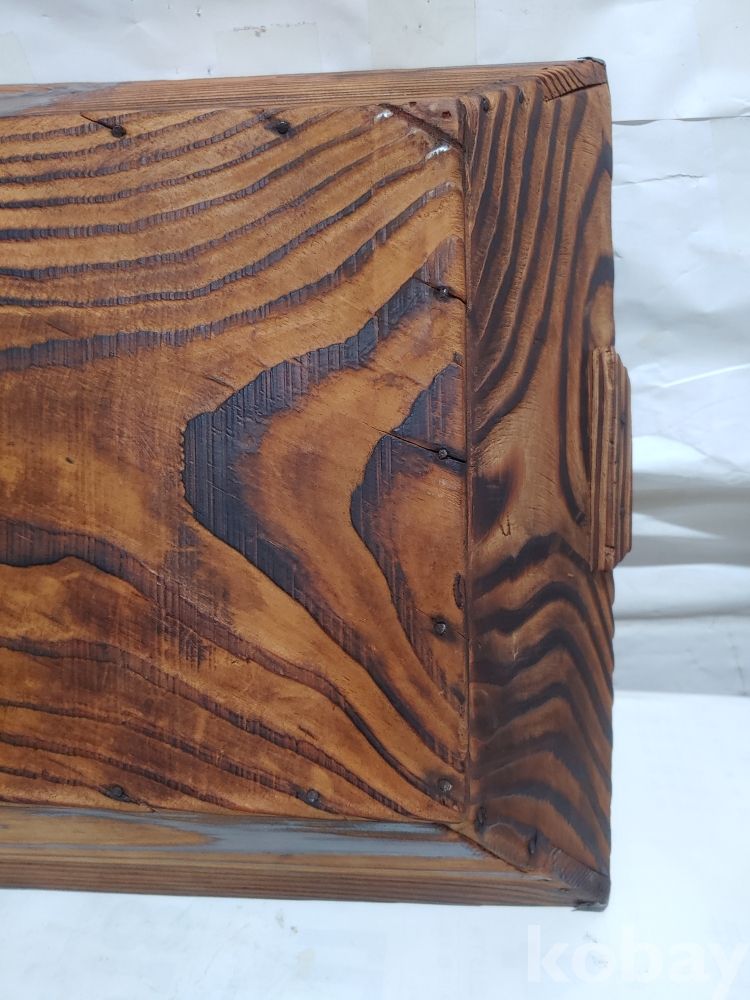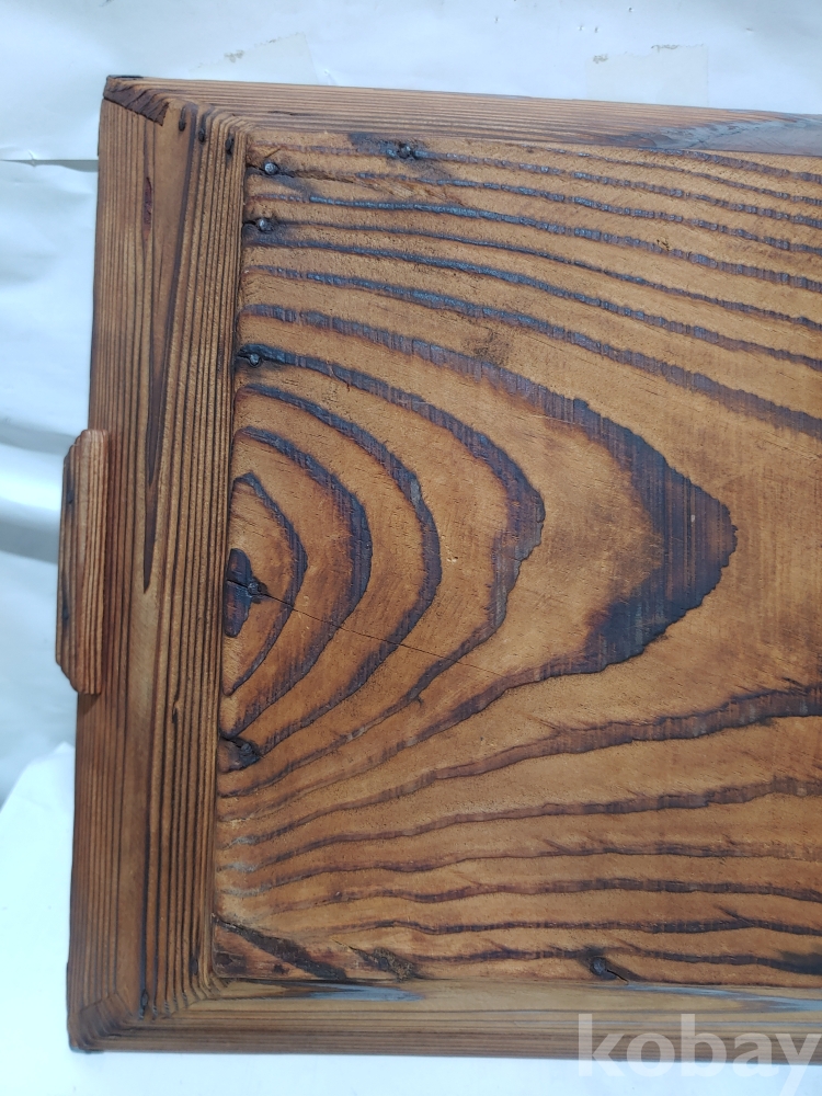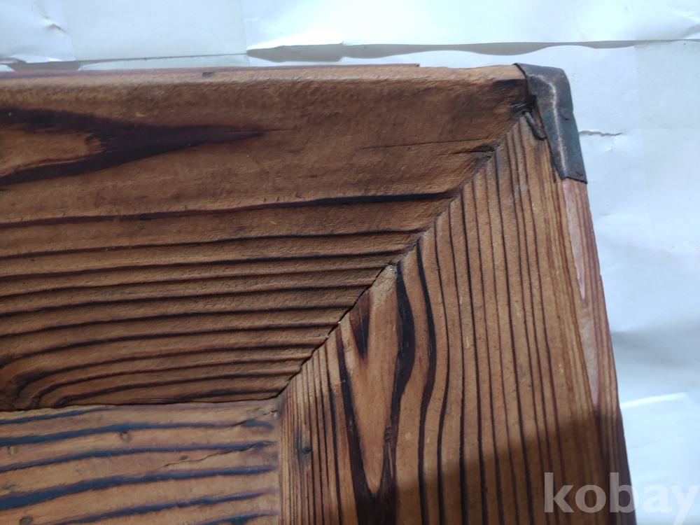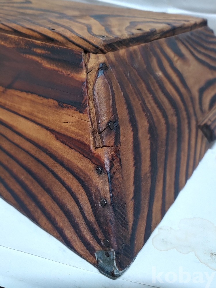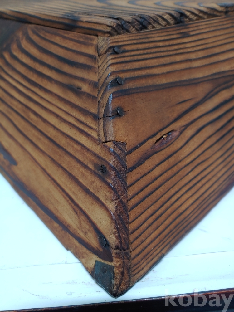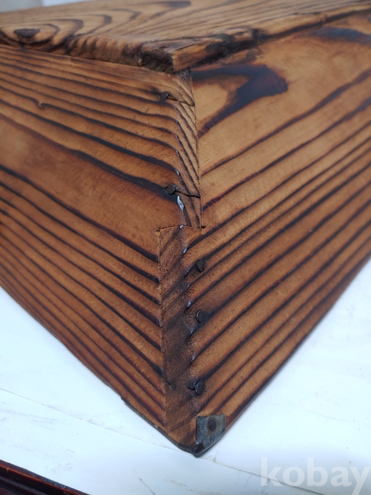 ""귀물림에 모서리가 양철로 마무리가 되어 있는 옛날 소나무 네모 함지""