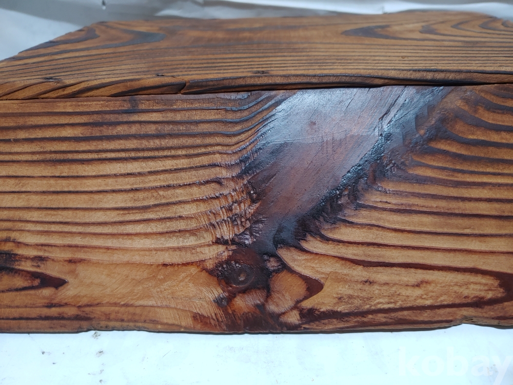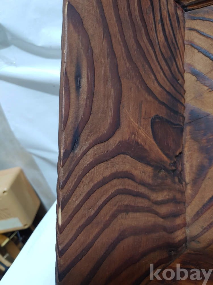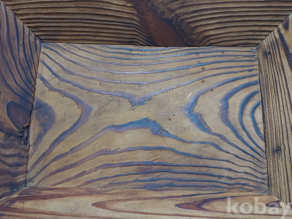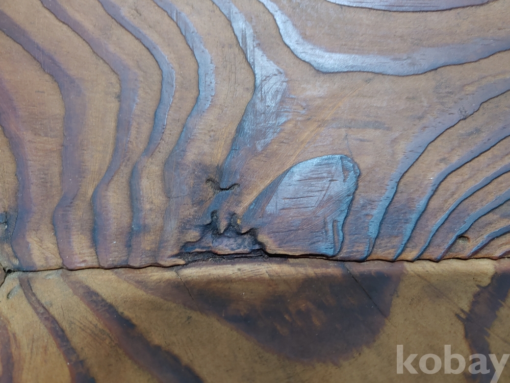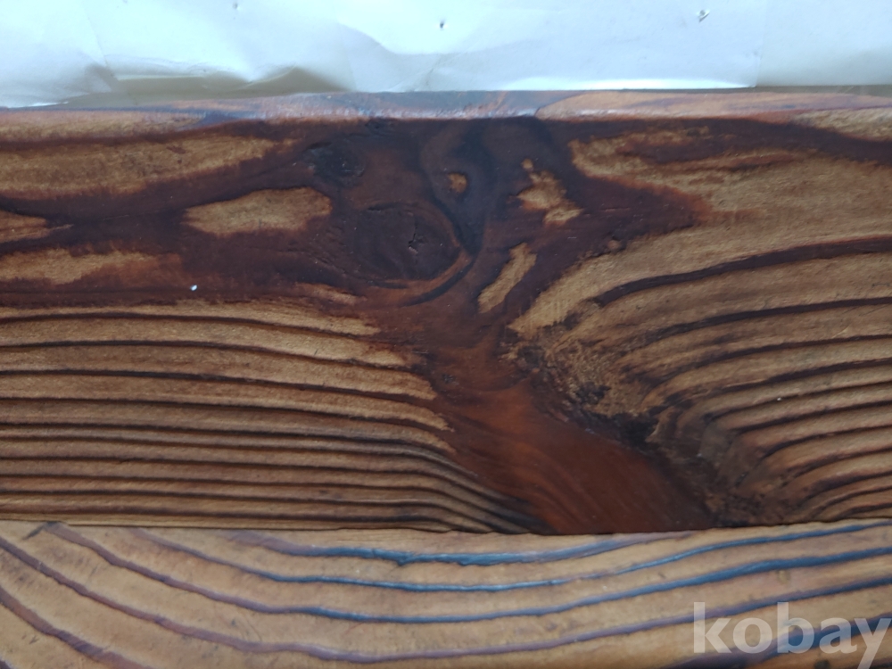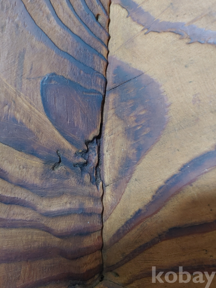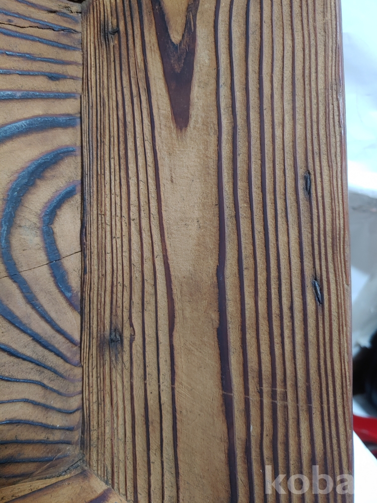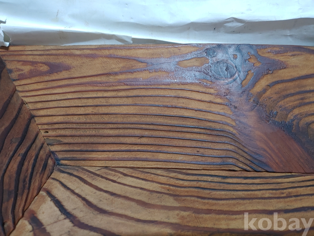 소나무의 옹이자욱이 옆면에 크게 있는 부분이 있으며