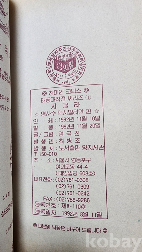 태풍 대작전 시리즈, 쟈글라, 1992년, 엄국진 그림