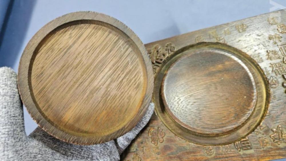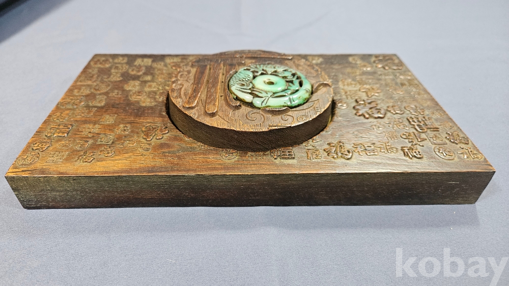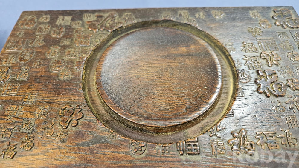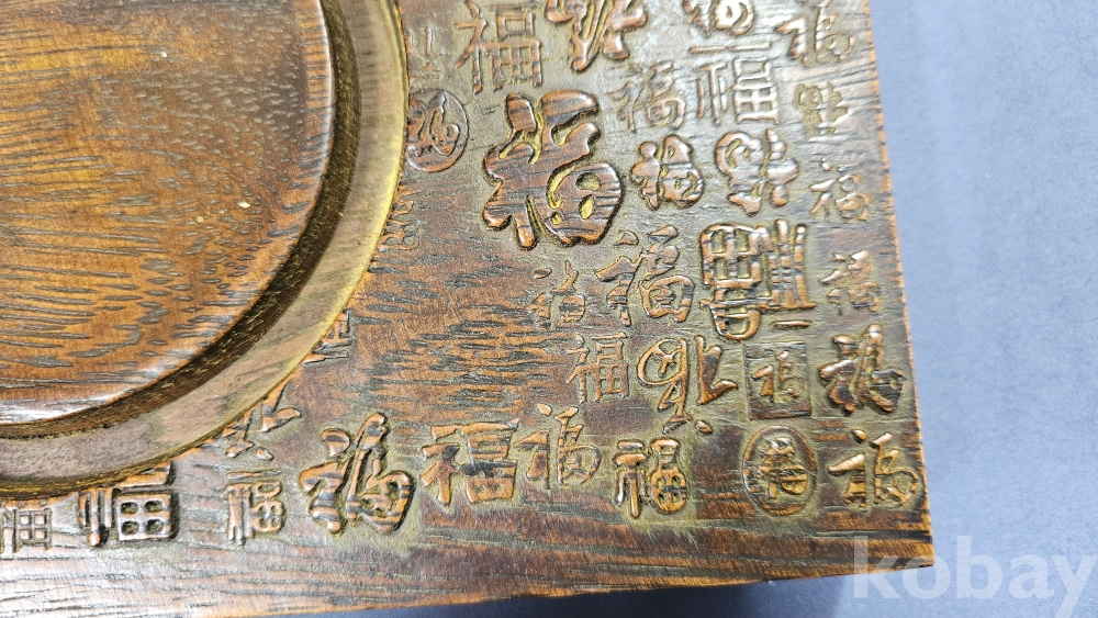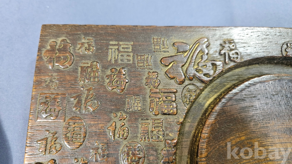福자가 다양한 서체로 조각되어 있는 예술적인 나무벼루 입니다.