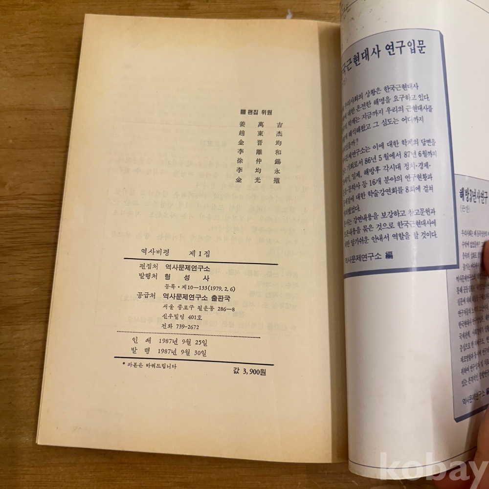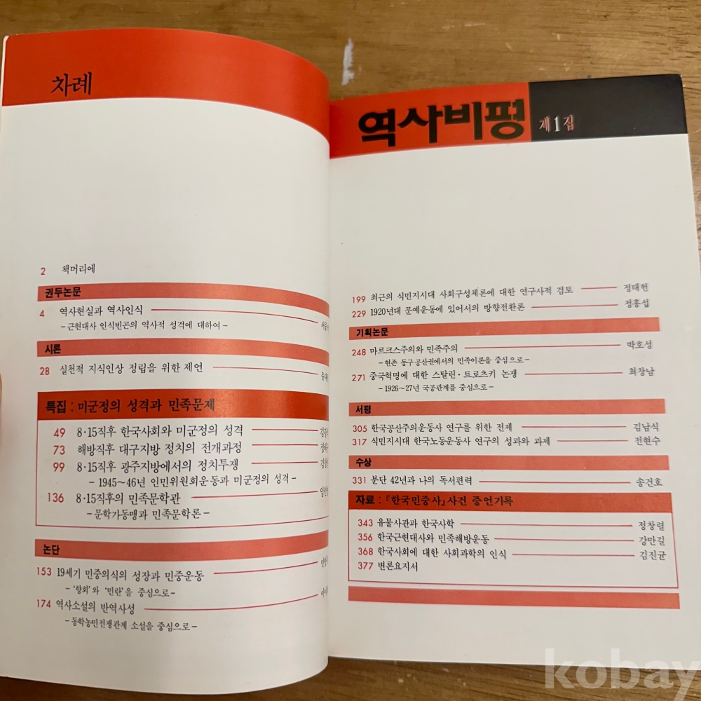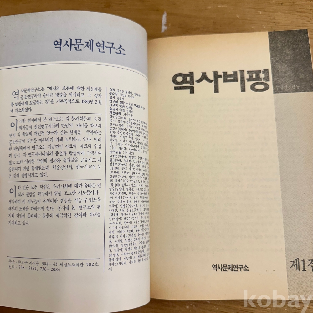 [한국현대사, 미군정, 한국민중사 사건] 역사문제연구소, <역사비평 제1집>, p. 391, 상태 중급(필기흔적, 사진참조)
