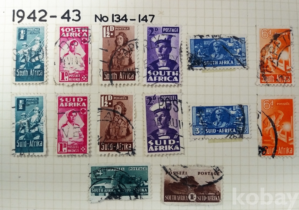 [흥미우표] 남아프리카,1942-43년 복합천공(선공+천공)우표 14매, LH