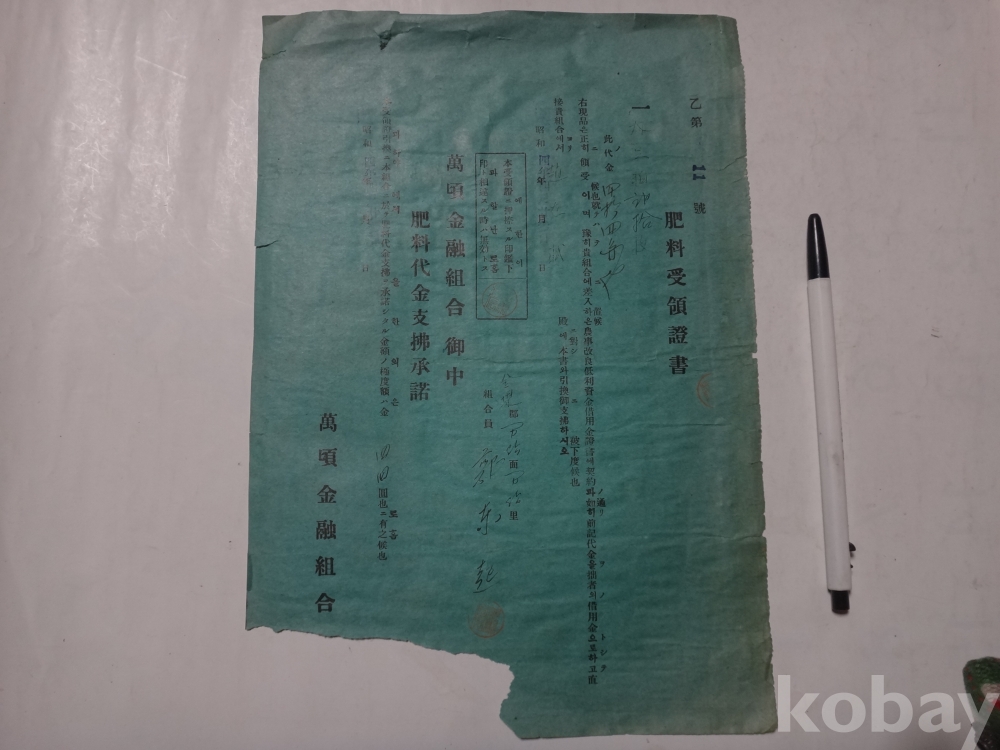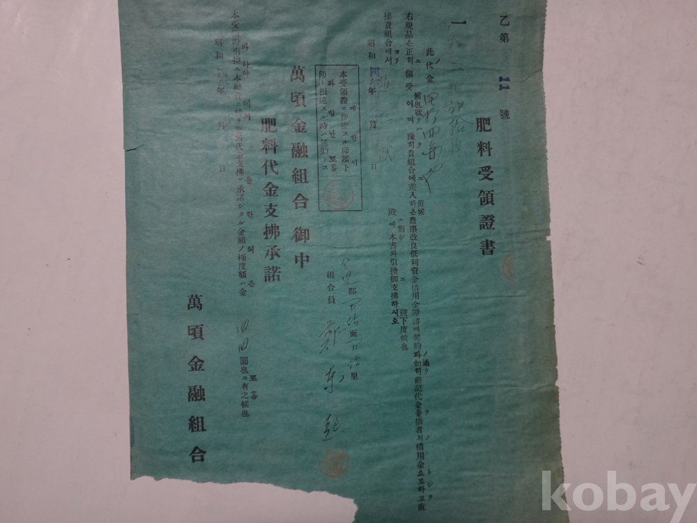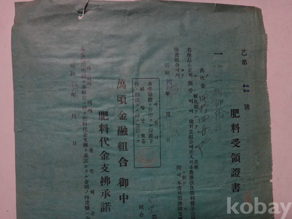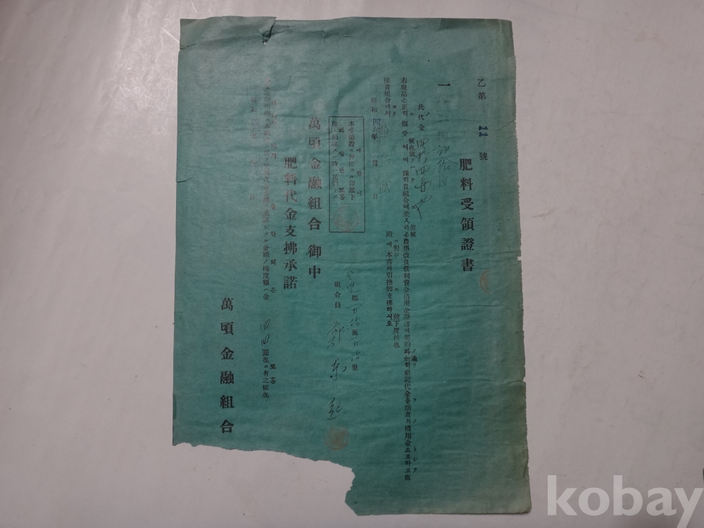 비료 수령증서 - 비료대금 지불승낙 (소화4년, 만경금융조합)