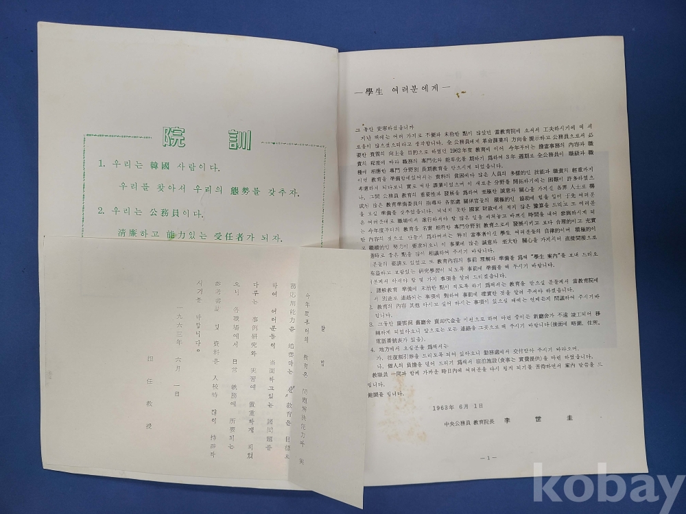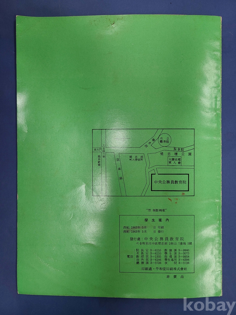 1963년도 學生案內/중앙공무원교육원/28쪽/앞표지 약간 흠이 있음