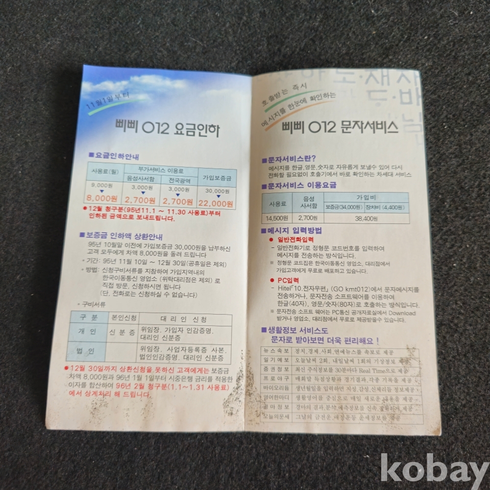 (((근현대사자료/삐삐012)) 1995년 한국이동통신 삐삐 012 요금인하/문자서비스개시 광고전단
