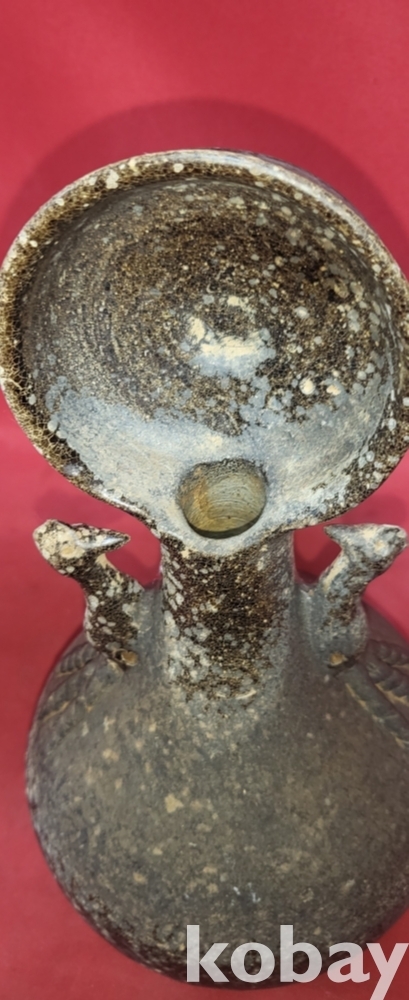 조선시대 흑유 (덴목구) 삼족오 양이 문양 독주병(獨酒甁)으로 출토품 입니다,