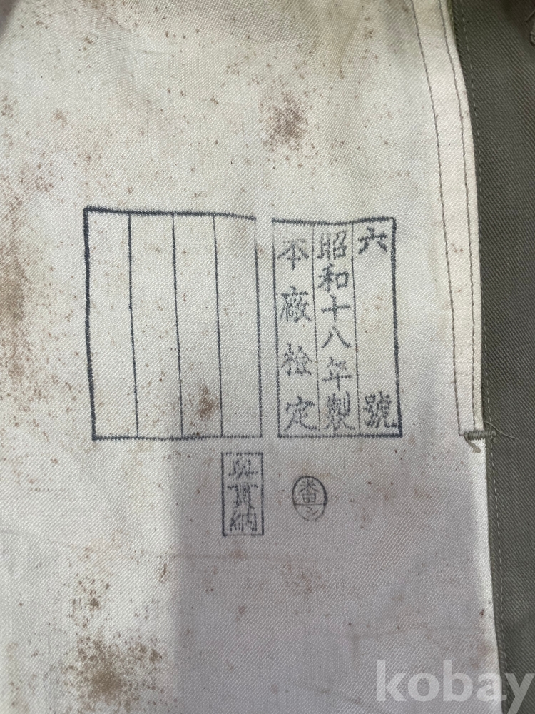 세계2차대전 쇼와18년 (1943년)제작된 일본군 전투복 상의 입니다.