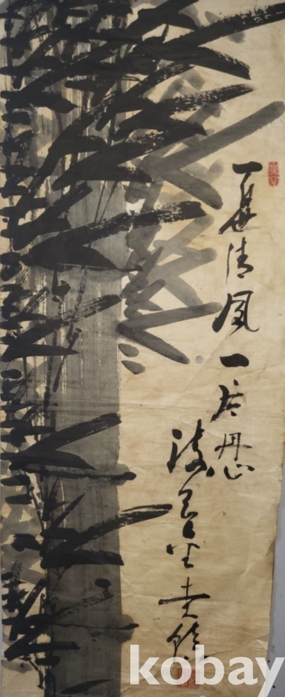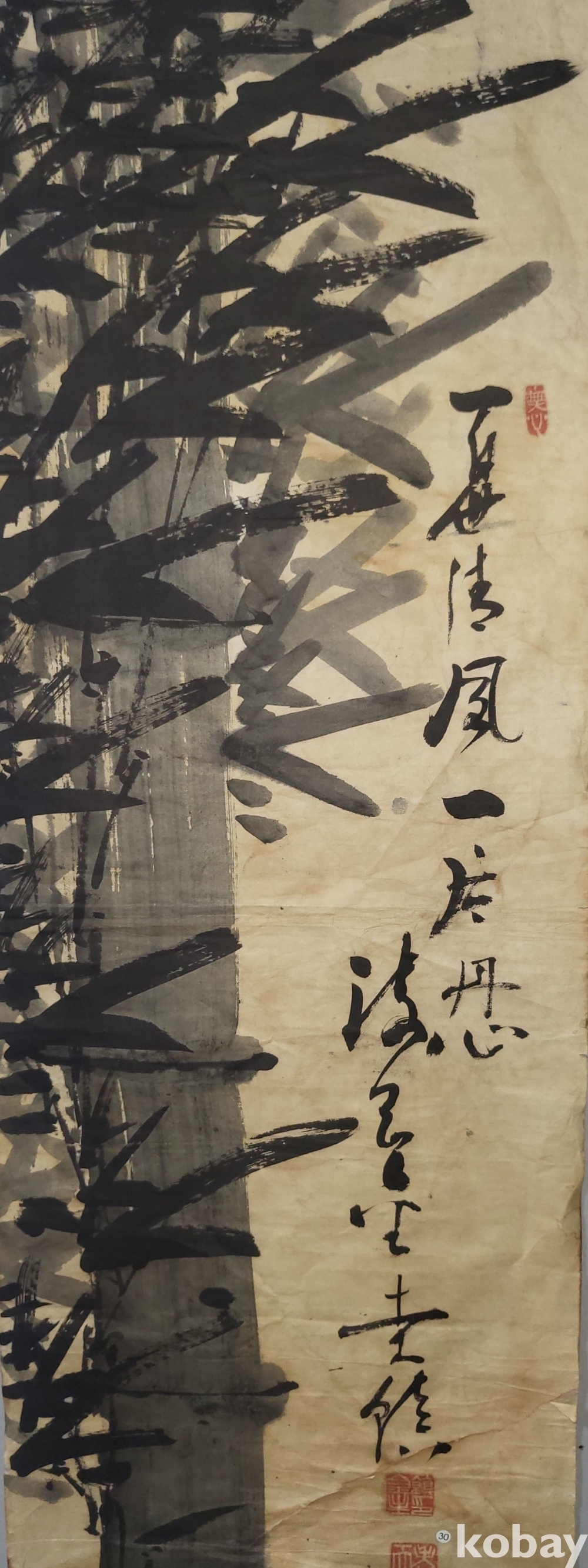 작가의 수결이 보이는 수묵 대나무 그림입니다,