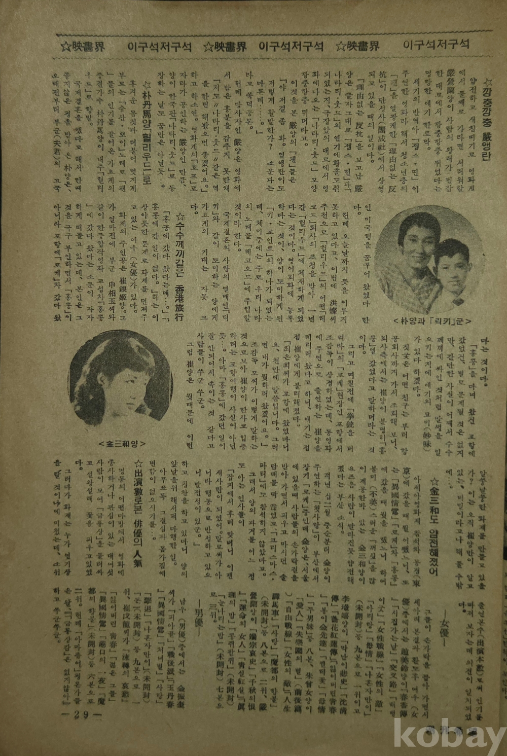 *페이지 29 상단 우측 이구석저구석 ☆깡충깡충 嚴앵란양 기사화.