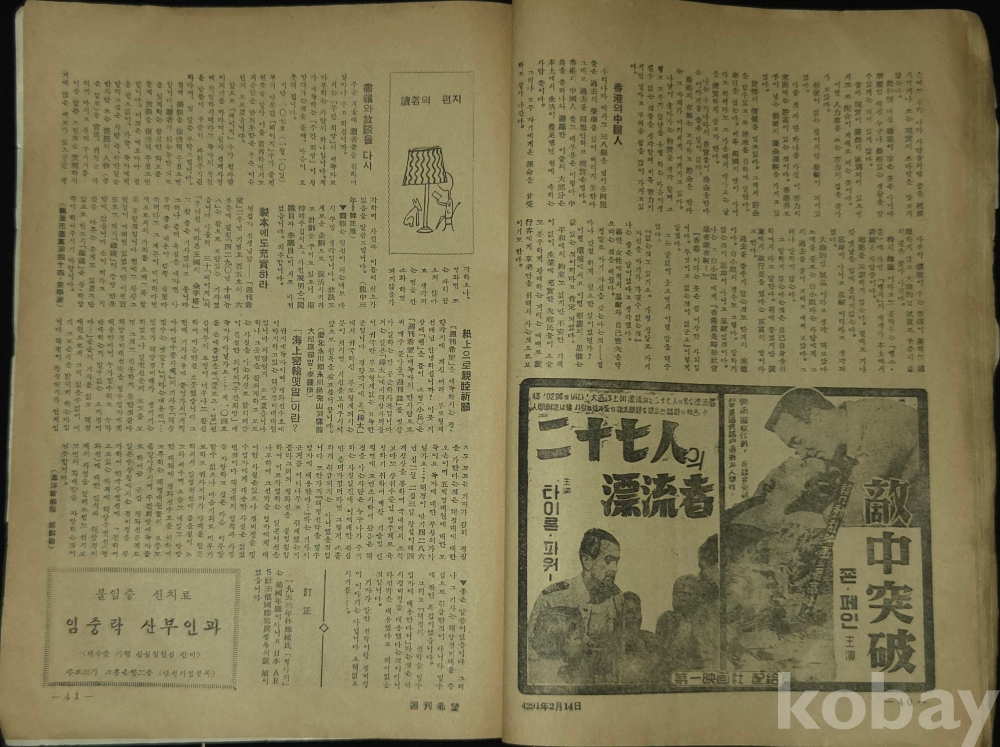 *올해 유명을 달리한 영화계 거목 김지미 포스터가 게재된 1958년 주간희망((週刊希望))