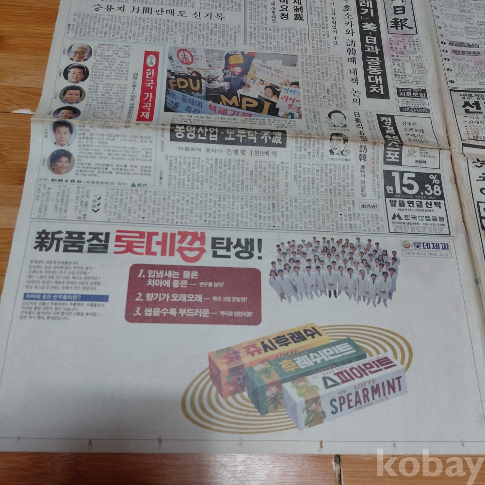 롯데 쥬시후래쉬 후레시민트 스피아민트껌 광고 조선 93년10월21일 올려드립니다