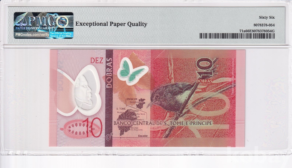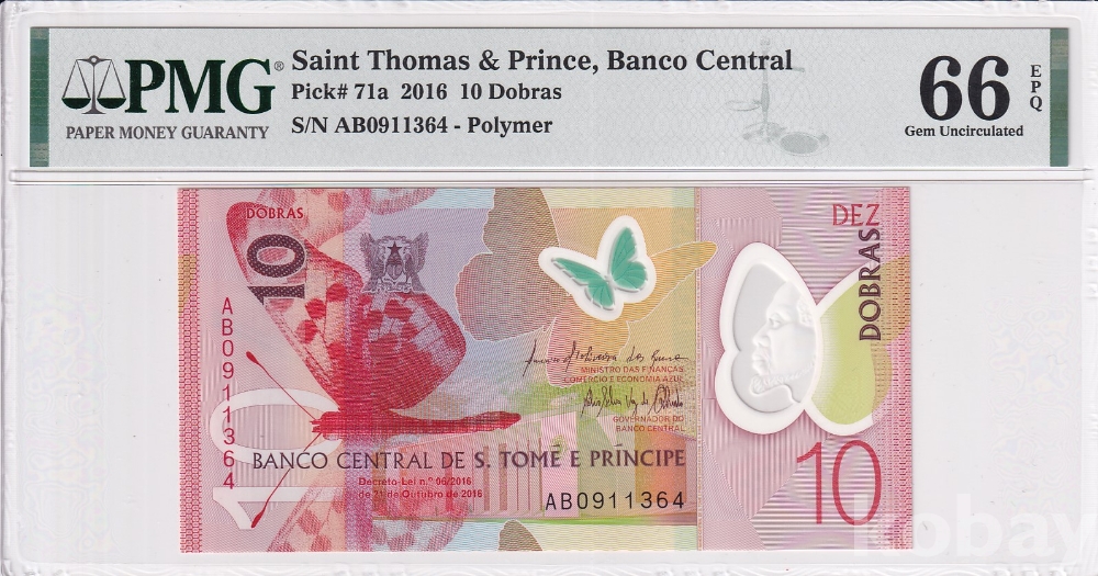 - 상투메 프린시페 2016년 10도브라 폴리머 PMG 66 EPQ 인증 지폐