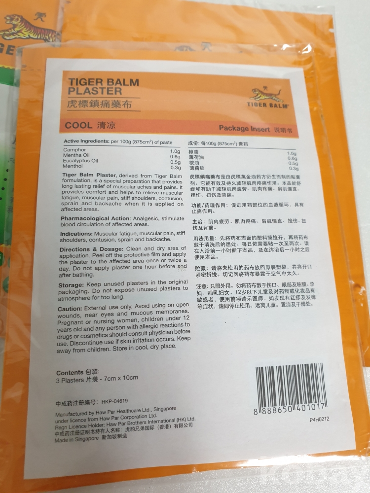 [천원경매] 1-014 타이거밤 플라스터(유통기한 지났으나 미개봉제품)