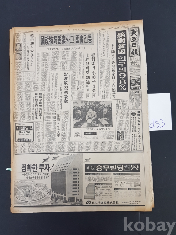 **** 1982.03.13(동아일보)/대한선주 K.S.LINE 광고포함/약 12면