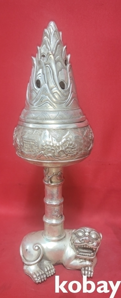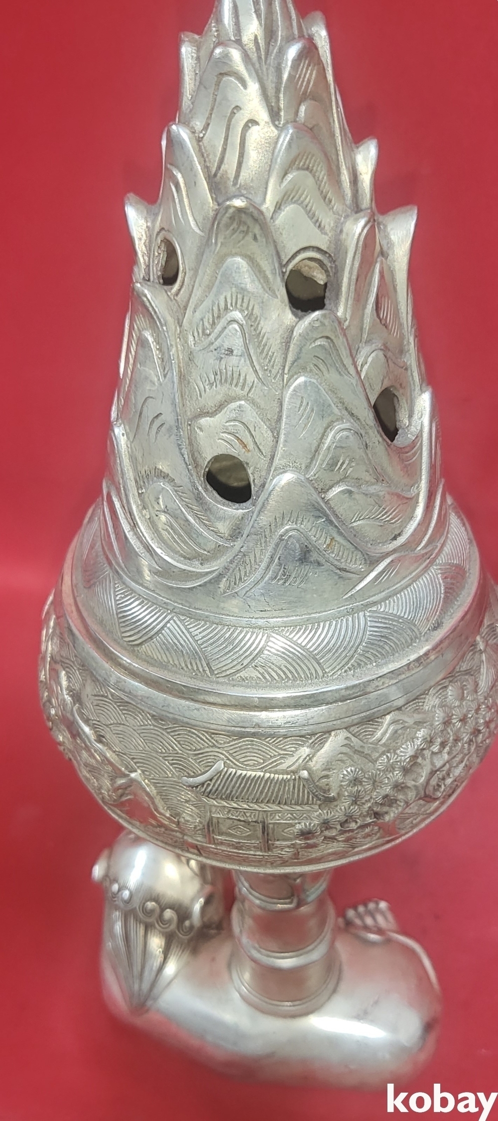 건륭연제 관지가있는 백동(白銅)으로 완성된 박산(博山)향로입니다,