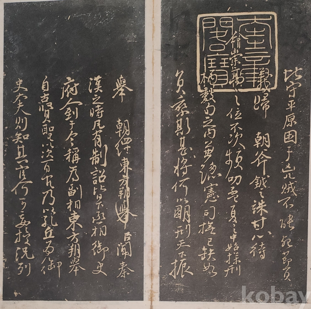 가리개 형식으로 양쪽에 탁본(拓本)이 붙어 있읍니다,