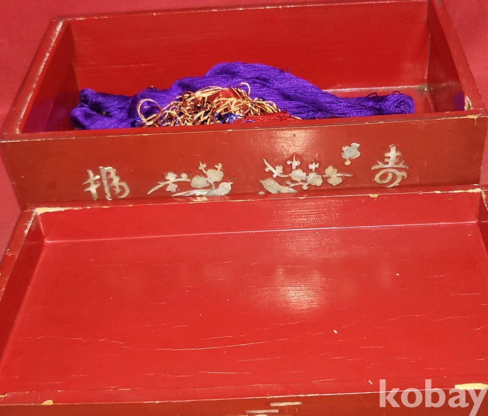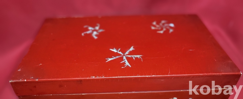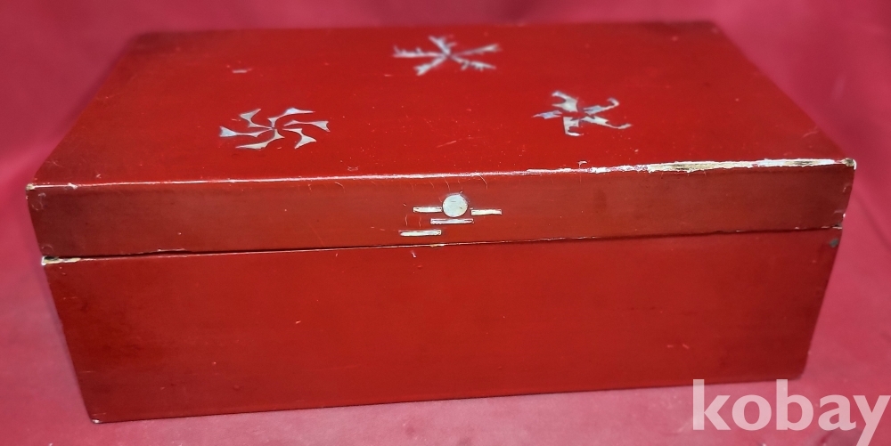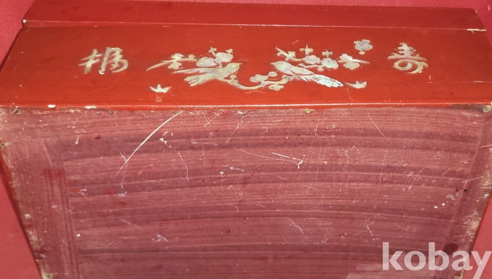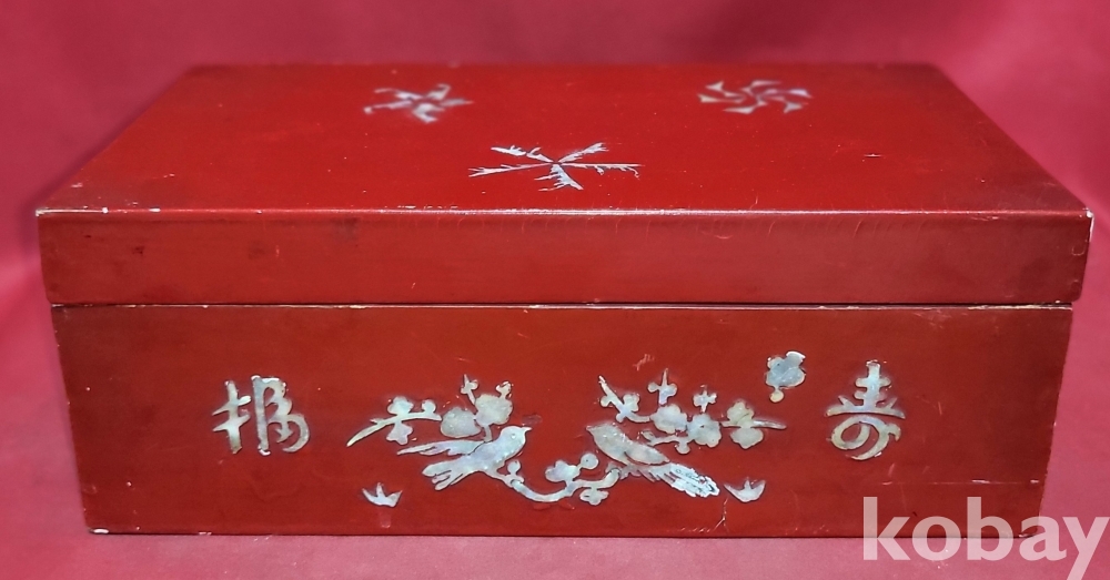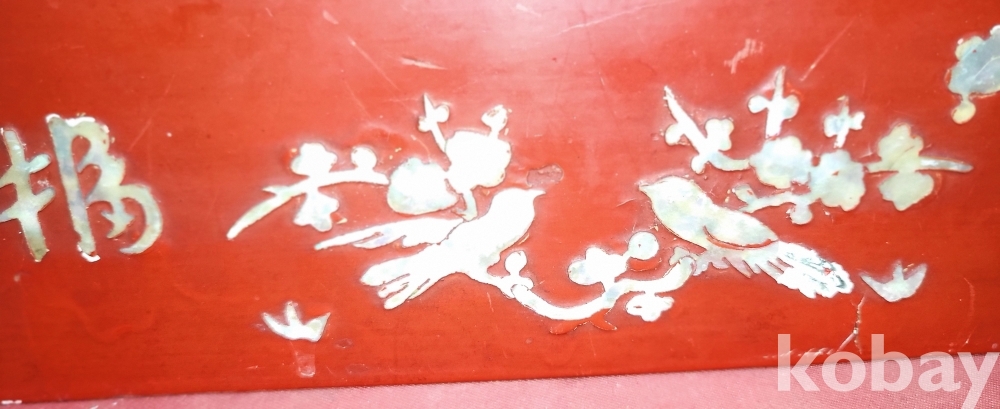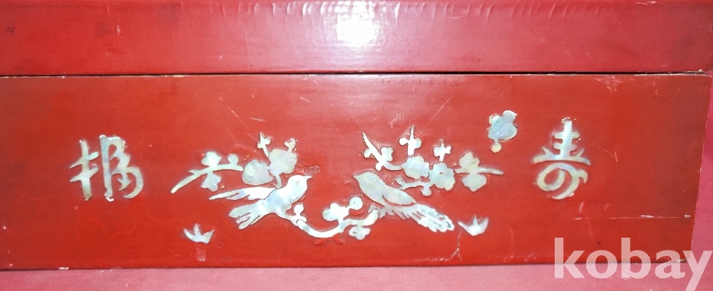 고급 자게와 홍칠로 마감된 문자와 매화 그리고 집박새 문양 함입니다,