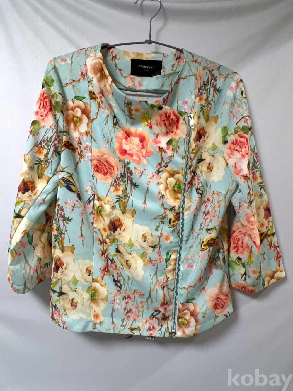 [천원경매] 밸리걸(vally girl) 여성 플로럴 프린트 하늘색 자켓 크롭핏 55~66