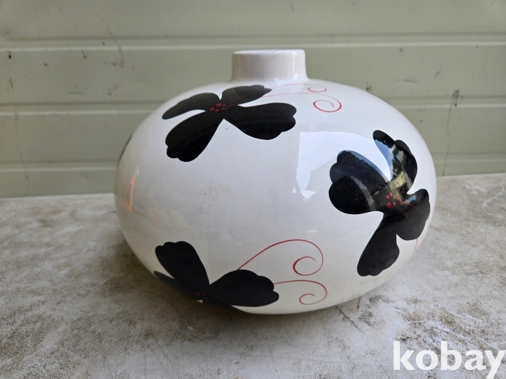 꽃 문양 입이 작고 납작한 도자기 입니다.