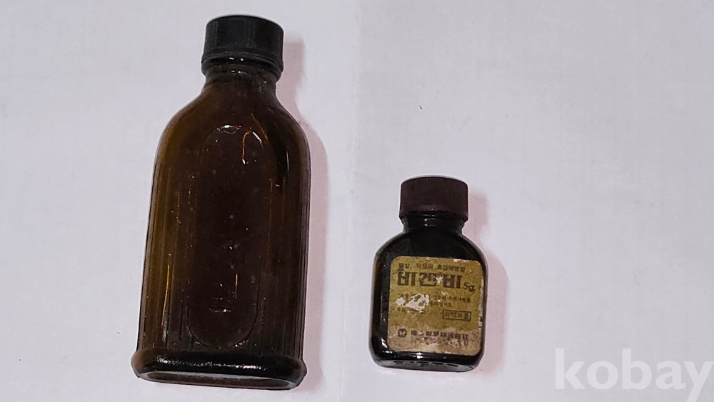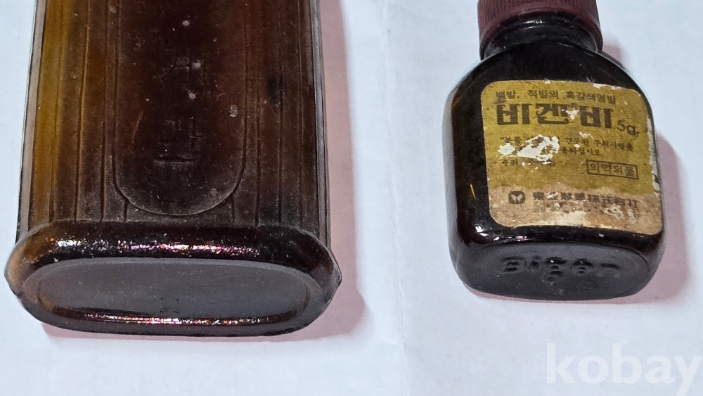 오래된 약병 2점 일괄 = 계관 . 비겐비 유리병 2점 일괄