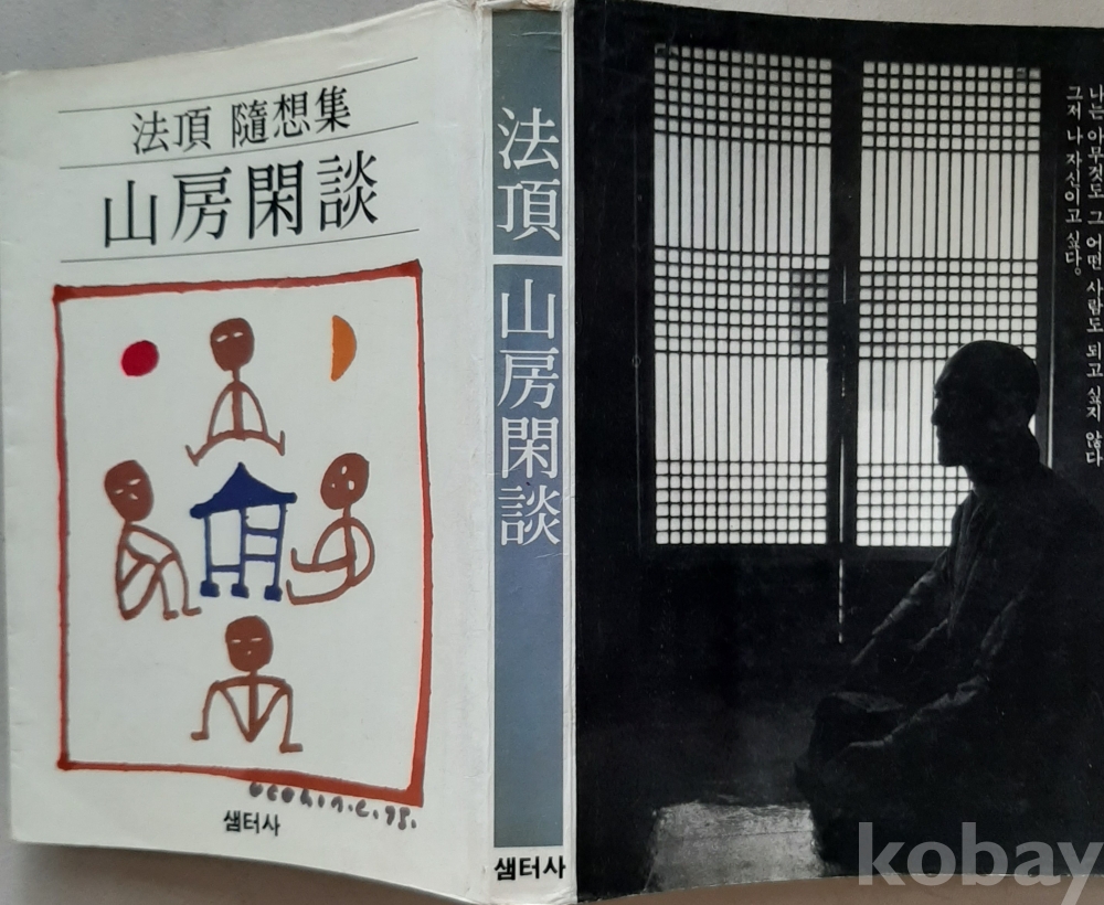 산방한담-법정 스님 수상집 1983년 중판 샘터사 발행 표지화 장욱진 판화 본문컷 이양원 뒷표지사진 육명심