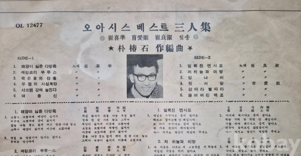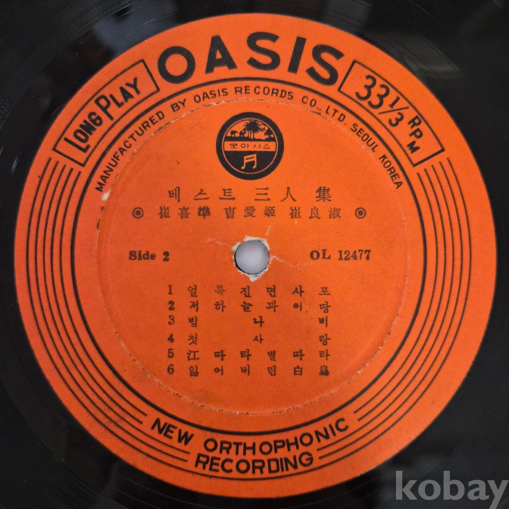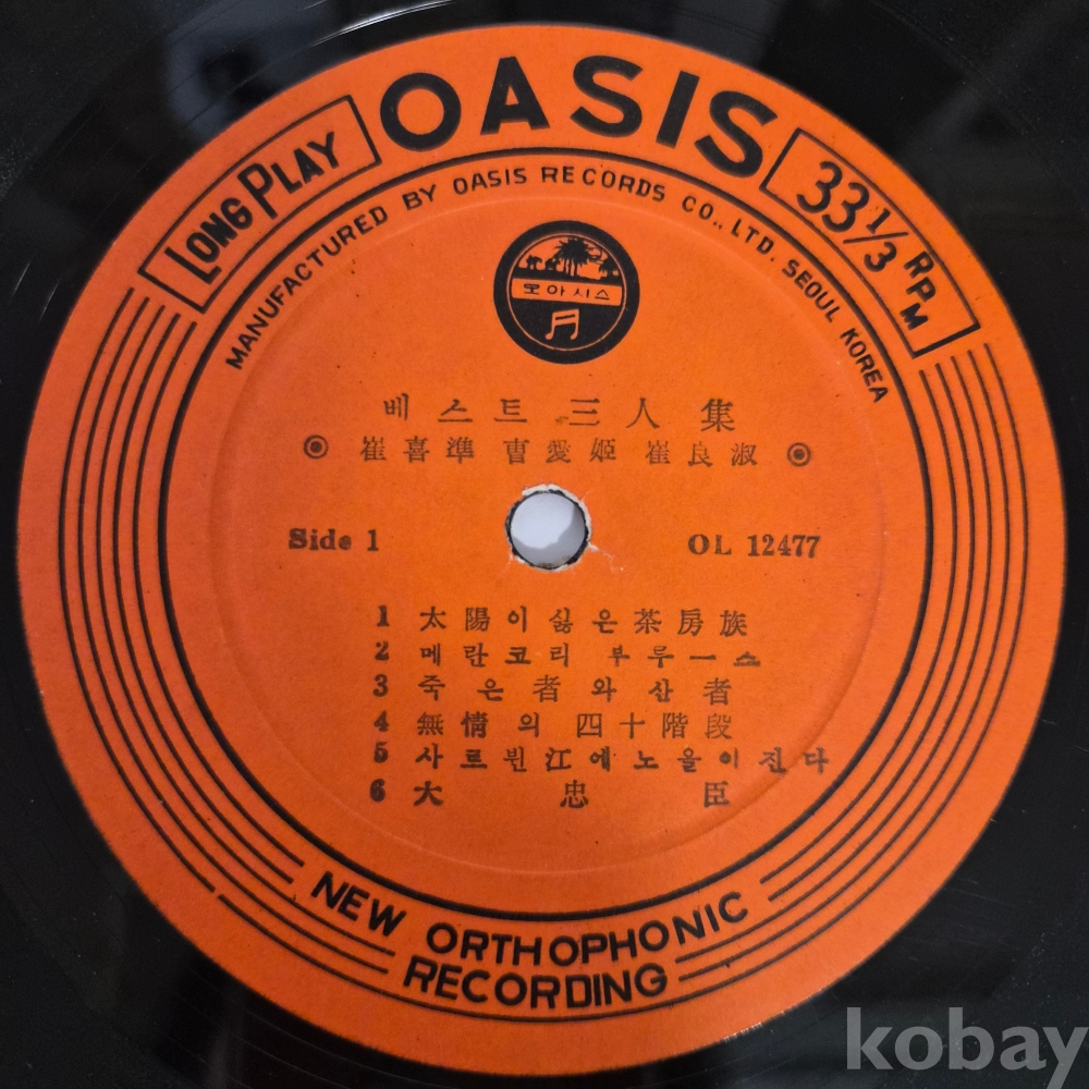 [추억의 희귀 LP 기획전] (최희준/최양숙/조애희) 오아시스 베스트 3인집 / 태양이 싫은 다방족 ☆ 얼룩진 면사포